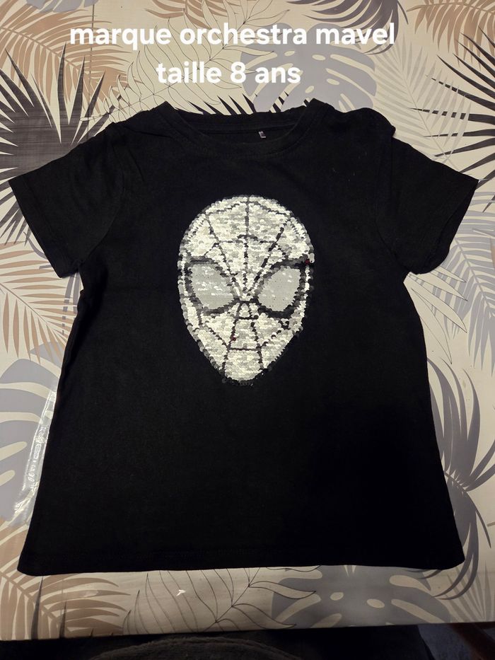 Bonjour Je vends ce tee shirt Tête de spiderman sequins Marque orchestra marvel Taille 8 ans Tres bon état N'hésitez pas à faire un lot dans mon dressing Cordialement
