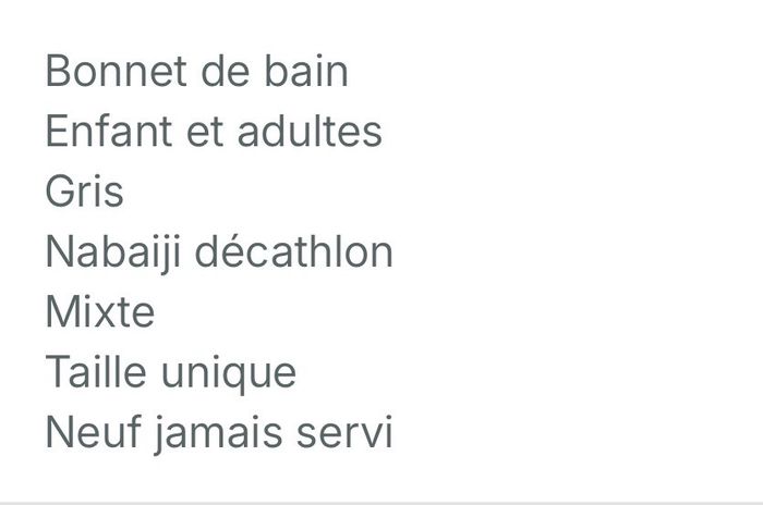 Bonnet de bain Nabaiji Gris Enfant ados adulte Neuf non utilisé