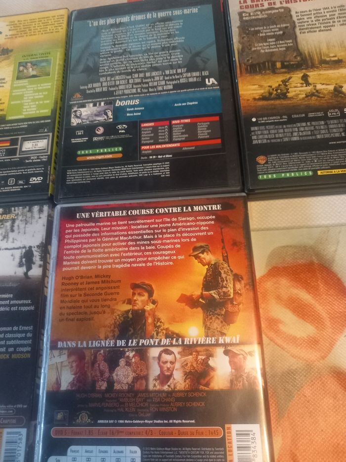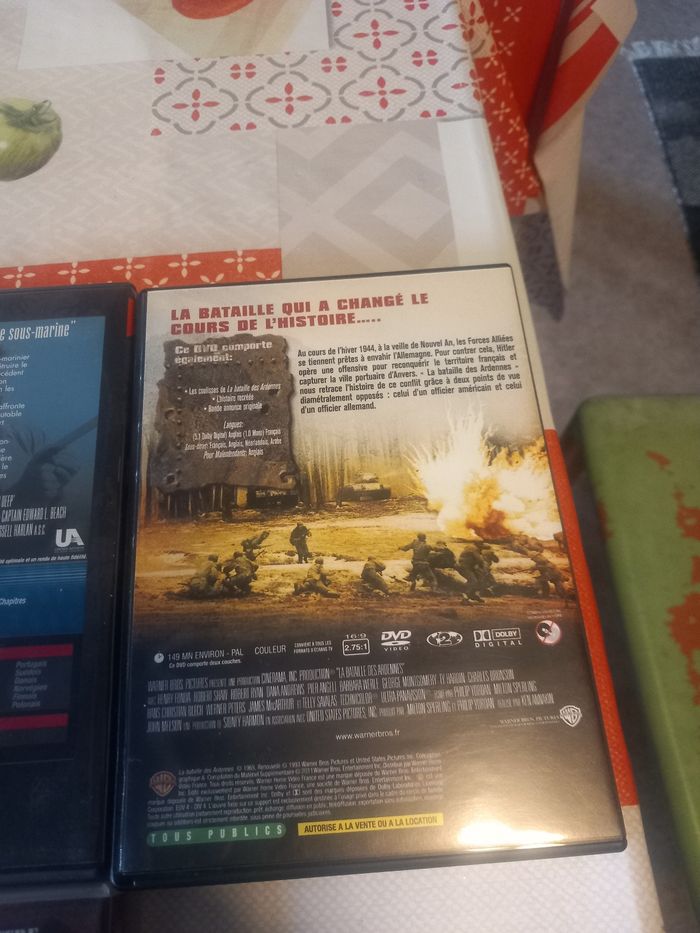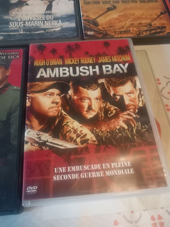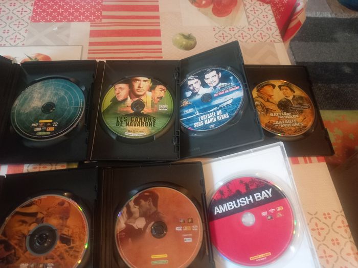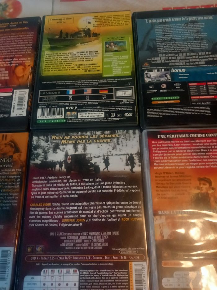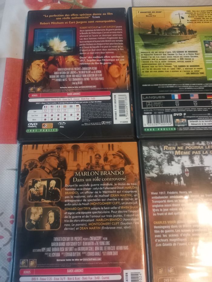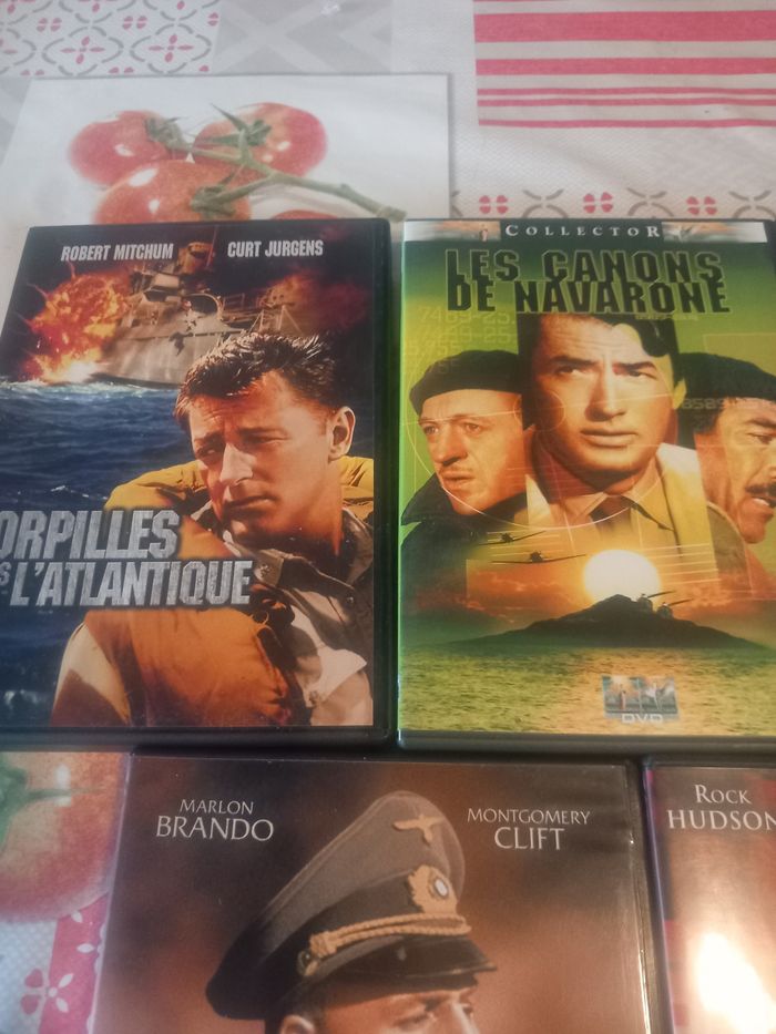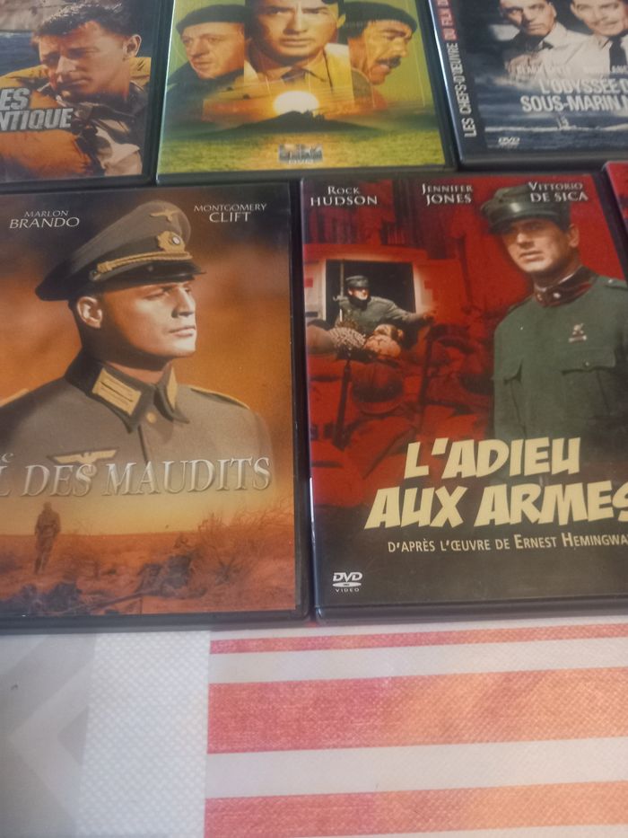 7 DVD films de guerres 1 : Le bal des maudits avec Marlon Brando 2 : L'adieu aux armes avec Rock Hudson 3 : Ambuch bay avec Hugh O'brian 4 : Torpilles sous l'atlantique avec Robert Mitchum 5 : Les canons de Navarone avec Gregory Peck 6 : L'odyssée du sous marin Nerka avec Clark Gable 7 : La bataille des Ardennes avec Henry Fonda En très bon état