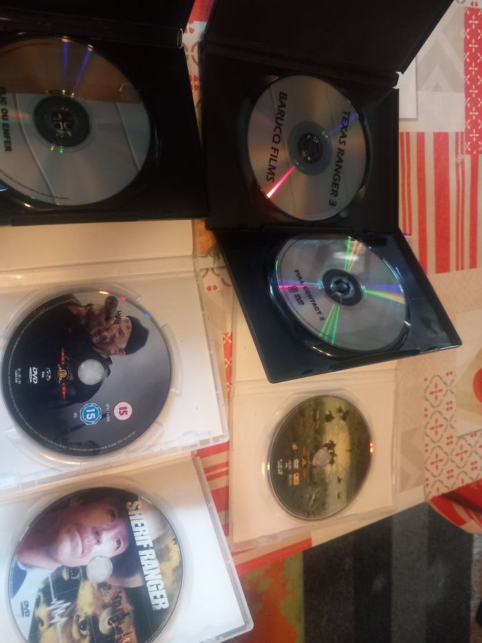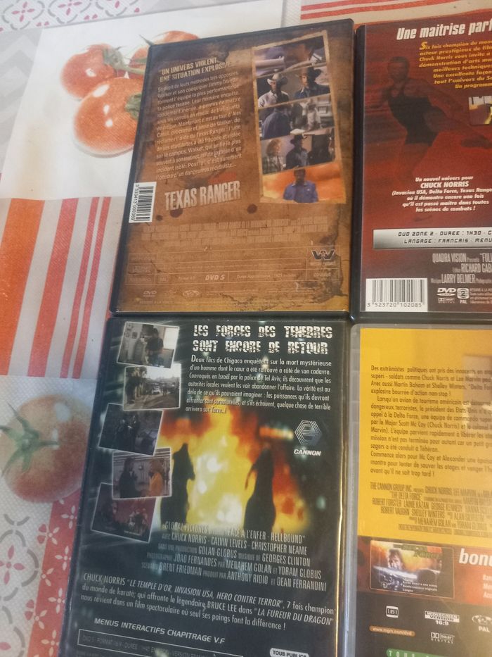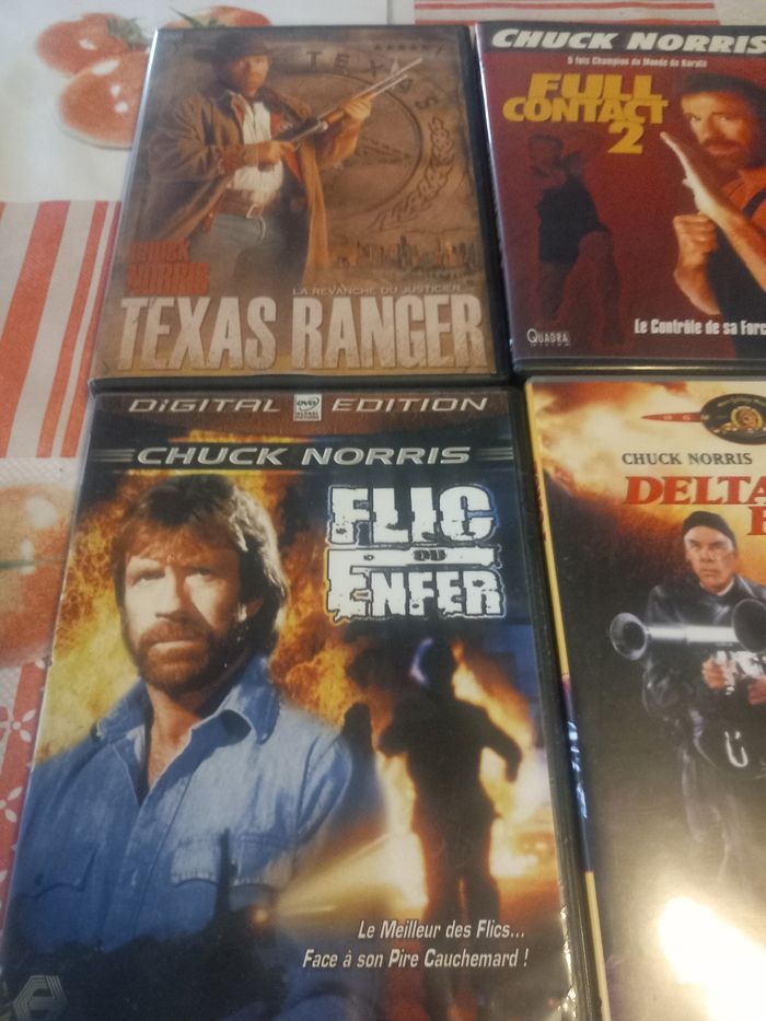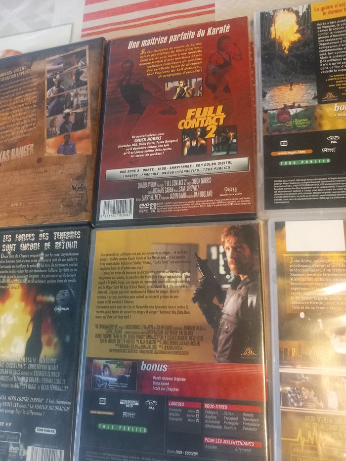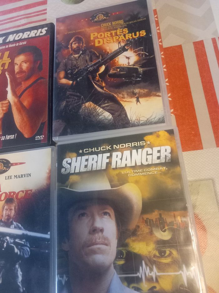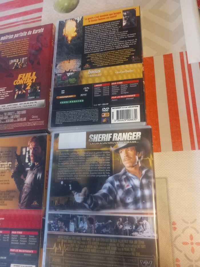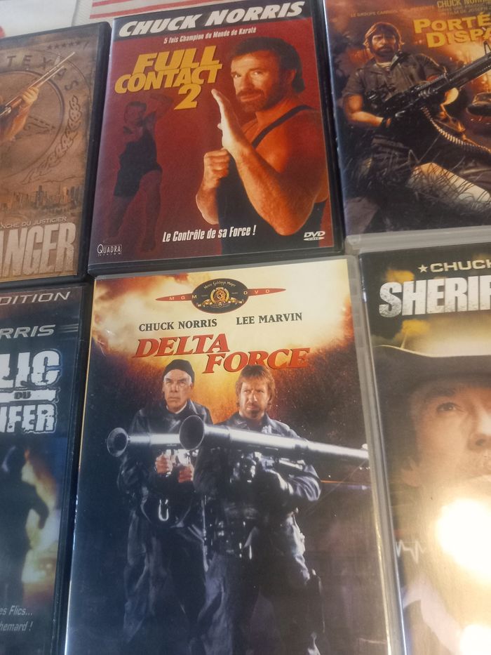 6 DVD films avec Chuck Norris 1 : Texas ranger 3 2 : Flic ou enfer 3 : Full contact 2 4 : Delta force 5 : Portés disparus 6 : Shérif ranger En très bon état