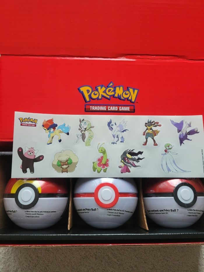 Coffret exclusive amazon, lot de 3 boîtes Poké ball. Chaque Poké ball contient 3 boosters soit 9 boosters. Ce sont des Tins poke ball. D'autres items disponibles dans mon profil.