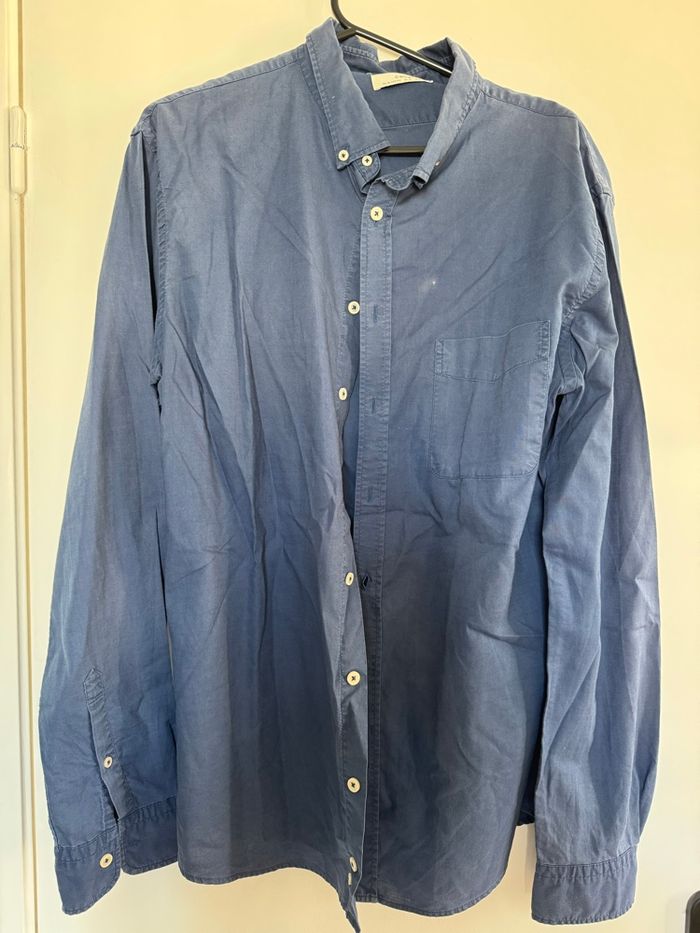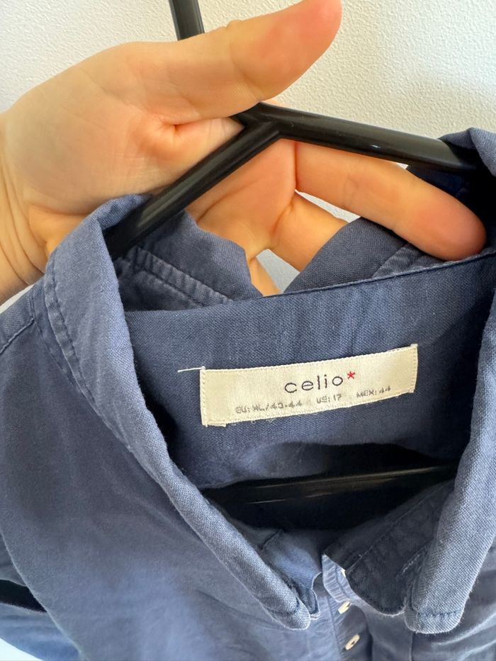 Belle chemise Celio couleur bleu marine, à la fois classique et moderne, parfaite pour un look casual chic ou professionnel 💼💙 ✨ Marque : Celio ✨ Taille : XL ✨ Couleur : Bleu marine ✨ État : Bon état (⚠️ deux petites taches très discrètes, à peine visibles) Coupe agréable à porter, s’accorde facilement avec un jean ou un pantalon habillé 👖 📦 Envoi rapide et soigné 💸 Prix négociable dans la limite du raisonnable 👕 Réductions possibles pour les achats en lot