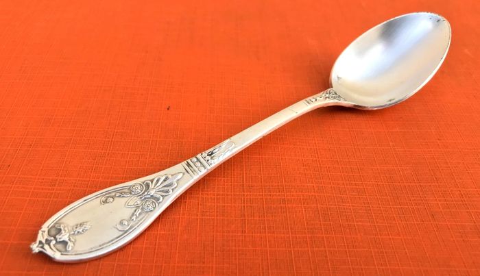 Ancienne cuillère à dessert Orfèvre Cailar Bayard Métal argenté 24grs Modèle Empire Décor de palmes et de fleurettes Longueur : 142mm Largeur : 29mm Poids total : 28grs Cailar Bayard entreprise française d'orfèvrerie fondée en 1874 par Noël Cailar et Pierre Bayard située à Paris au 37 et 39 rue Grange aux Belles, produisant des articles de haute qualité jusqu' en 1934...