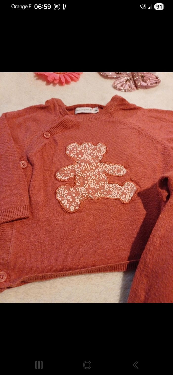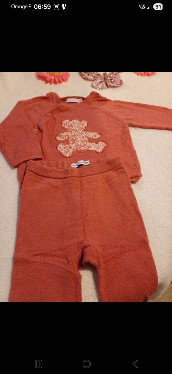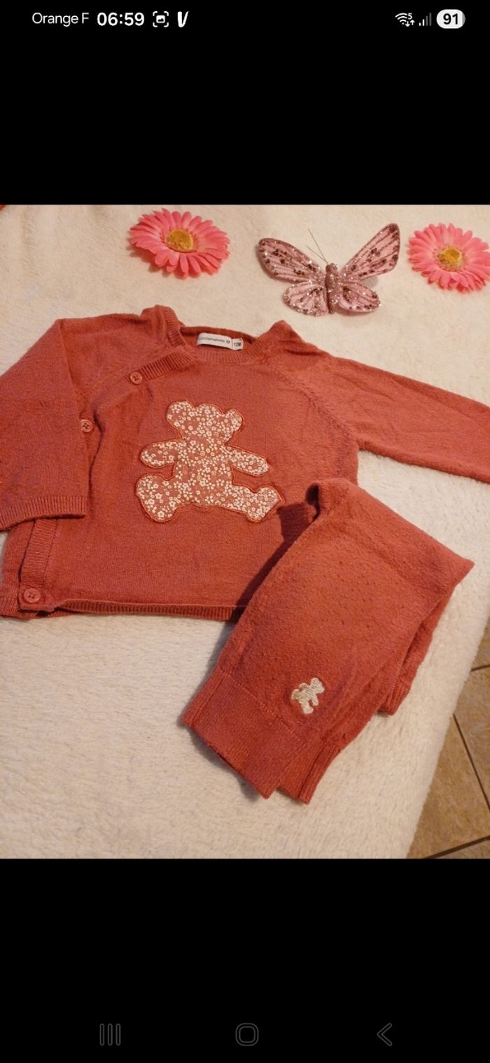 Ensemble comprenant un petit pull fin qui s ouvre par l avant et un legging. Malheureusement le tout est bouloché