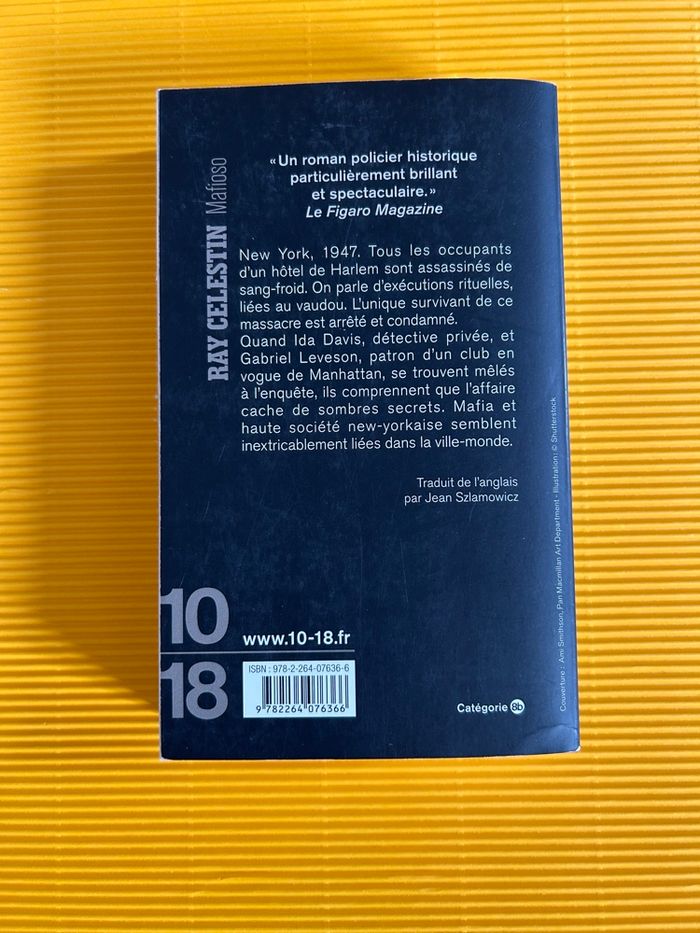 Je vends ce livre en excellent état Titre : Mafioso : jazz, mafia et meurtres en série Auteur : Ray Celestin Éditeur : 10-18 Genre : Romans policiers Thème : Littérature moderne et contemporaine, Romans, Policiers Format : Poche 643 pages Hauteur : 18 cm Largeur : 11 cm Epaisseur : 2 cm Résumé Mafioso New York, 1947. Tous les occupants d'un hôtel de Harlem sont assassinés de sang-froid. On parle d'exécutions rituelles, liées au vaudou. L'unique survivant de ce massacre est arrêté et condamné. Quand Ida Davis, détective privée, et Gabriel Leveson, patron d'un club en vogue de Manhattan, se trouvent mêlés à l'enquête, ils comprennent que l'affaire cache de sombres secrets. Mafia et haute société new-yorkaise semblent inextricablement liées dans la ville-monde. Envoi rapide et très soigné
