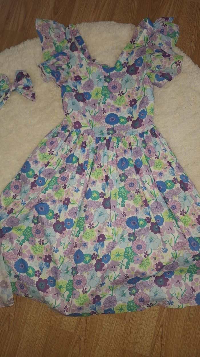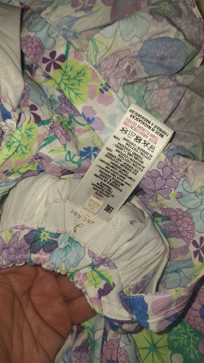 Robe dos croisé Jacadi Liberty 10 ans 140 cm parfait etat (etiquette taille coupée sur la ceinture mais présente sur la robe) et grande barrette creatrice assortie Tout en parfait etat car mis une fois pour une cérémonie