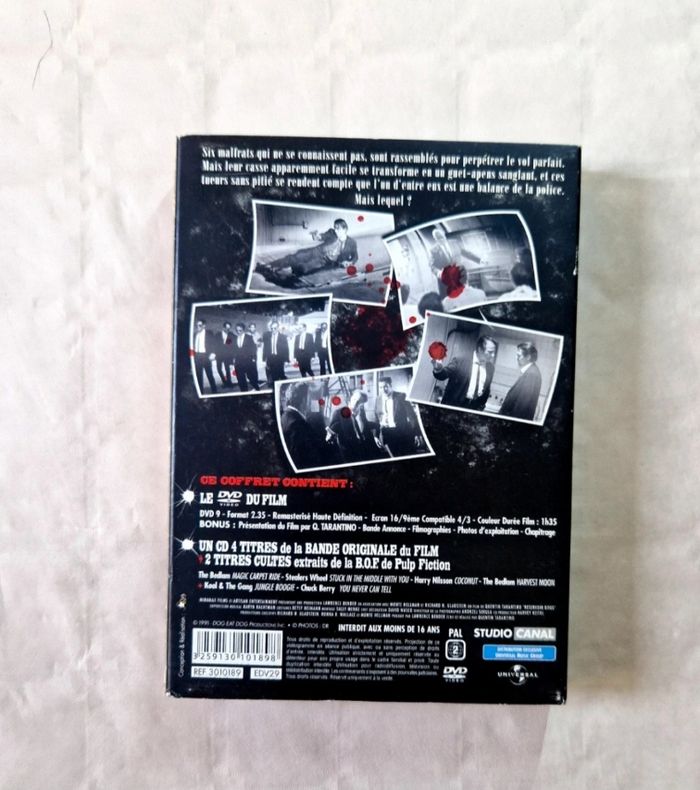 Bonjour, ​Je propose ce film culte de Quentin Tarantino en édition collector limitée. ​Détails de l'objet : ​Contenu : Le film "Reservoir Dogs" accompagné d'un CD bonus. ​État physique : Très bon état général ​Complétude : Vendu complet avec son fourreau cartonné, son boîtier et ses 2 disques (le DVD du film et le CD 4 titres de la bande originale). ​ #Tarantino #ReservoirDogs #Cinema #Collector #DVD #StudioCanal