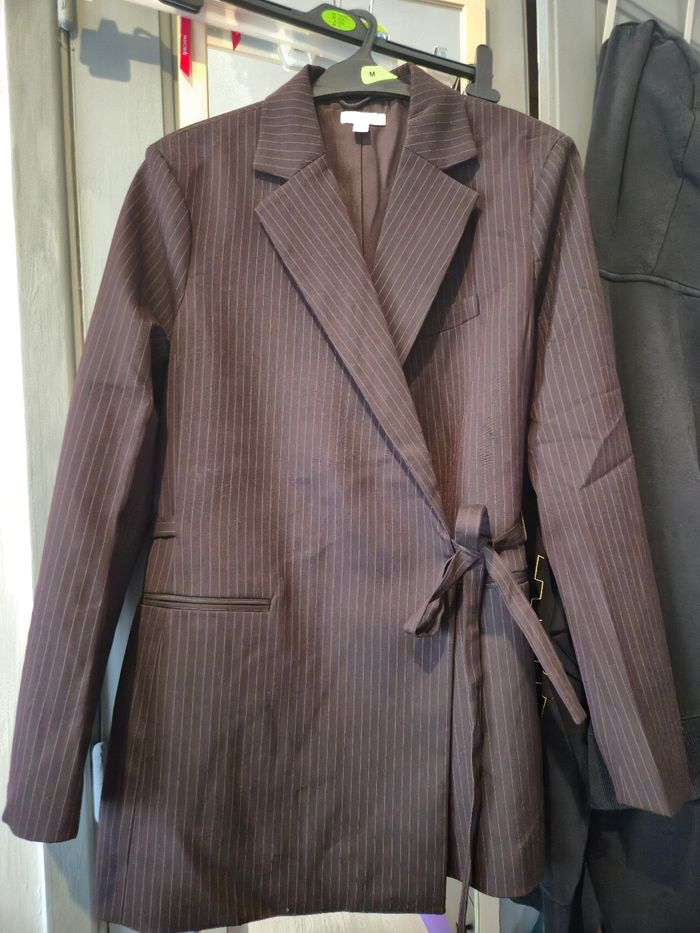 Blazer à nouer taille L style kimono H&M Jamais porter Petite "Tâche" blanches dessus comme sur les photos, ce voit à peine, elles y etaient déjà lorsque je l'ai acheté, et les autres pièces en magasins en avaient aussi