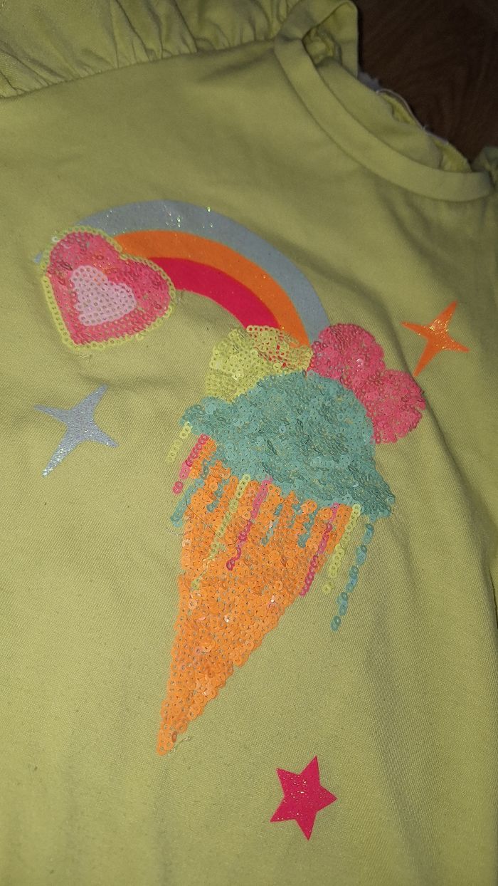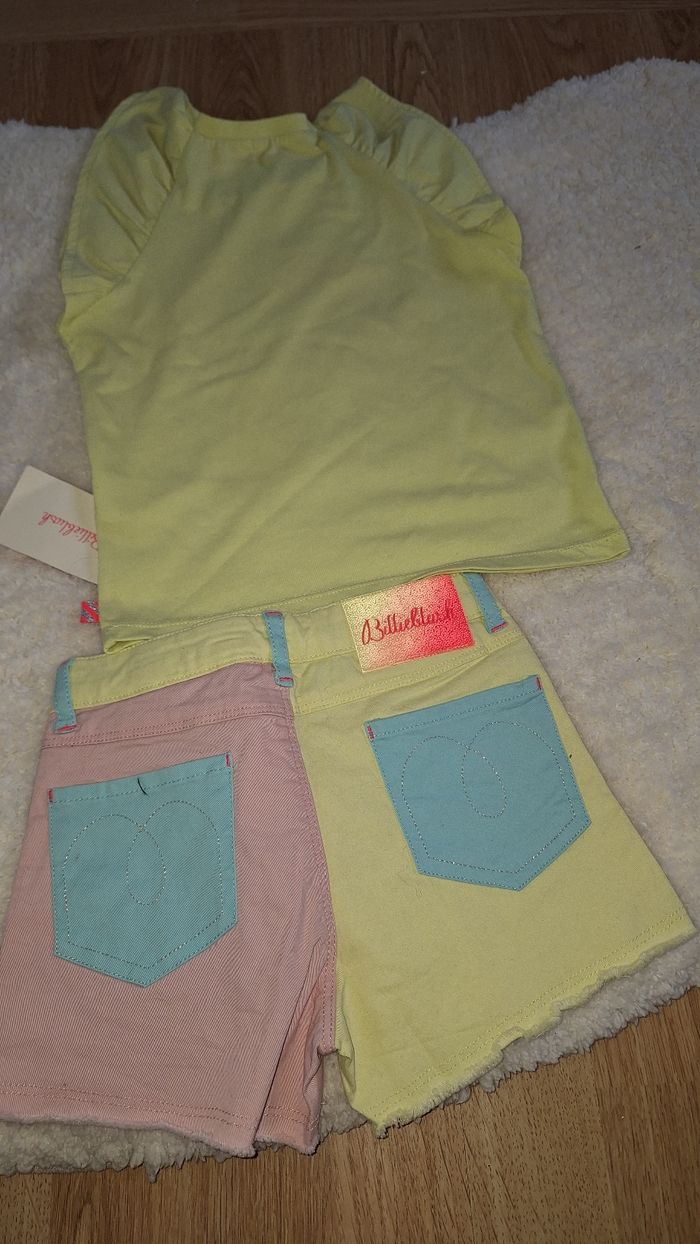 Ensemble Billieblush 5 ans compose par un t shirt taille 5 ans 108 cm en tres bon etat et short réglable à la taille 5 ans 108 cm neuf avec étiquette