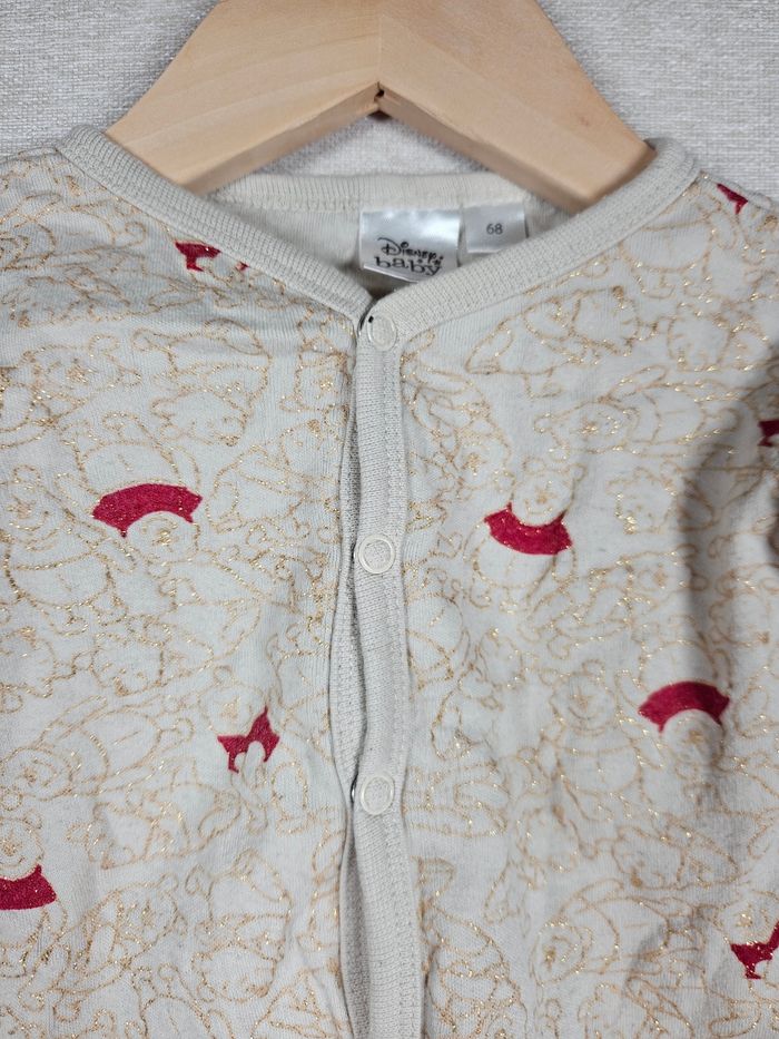 Hello ! 👋 Je te propose cette pièce de la marque Disney, une super trouvaille pour le dressing de bébé 👶 ! Ce pyjama sans pieds avec ses motifs dorés de Winnie l'Ourson et ses petites touches rouges scintillantes est parfait pour des nuits pleines de douceur et de magie. Informations utiles: * 👕 Article : Pyjama long sans pieds avec ouverture pratique à pressions sur le devant et à l'entrejambe * 📏 Taille : 68 cm * 🌈 Couleur : Beige clair crème avec motifs contours dorés et détails rouges brillants * 🧵 Matière : 100% coton * ✨ État : ⭐⭐⭐⭐ Les petits + : 🏡 Logement non fumeur et sans animaux. 📦 Envoi rapide et soigné. N'hésite pas si tu as la moindre question ou si tu veux d'autres photos ! Je suis là. 😉 #disney #winnielourson #68cm #pyjamabebe #pyjamasanspieds #creme #coton #dore #tresbonetat #vetementbebe