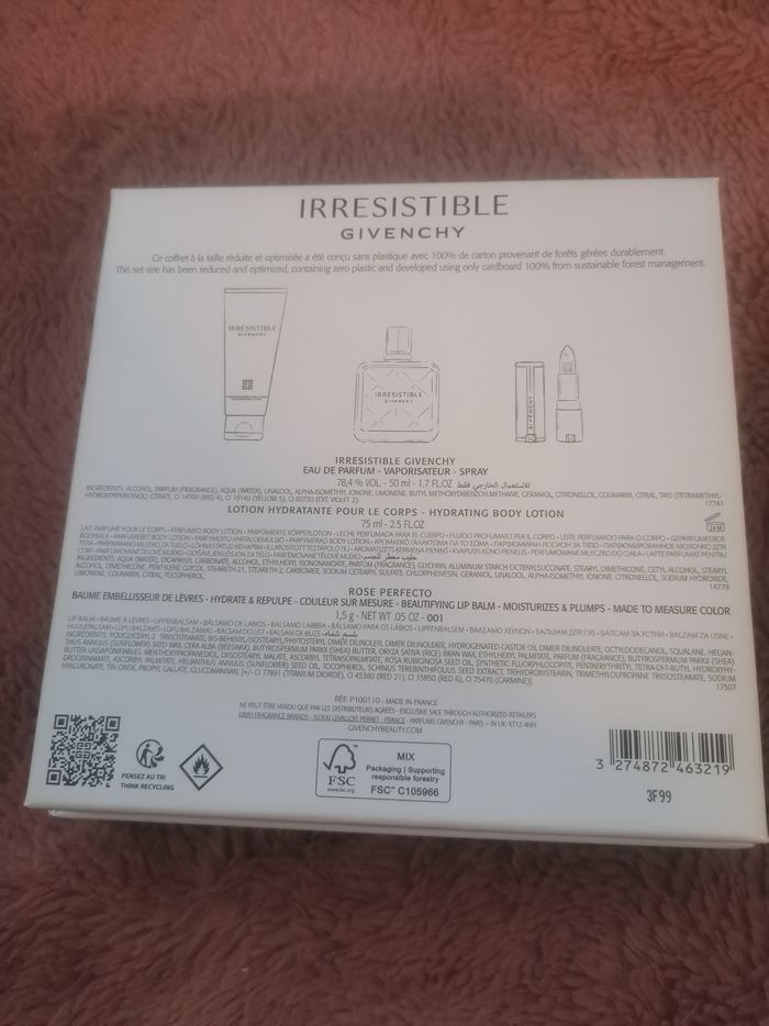 coffret eau de parfum irrisistible givenchy 50ml + lotion corps 75ml + bzume embelisseur de lèvres rose perfecto neuf jamais utilisé
