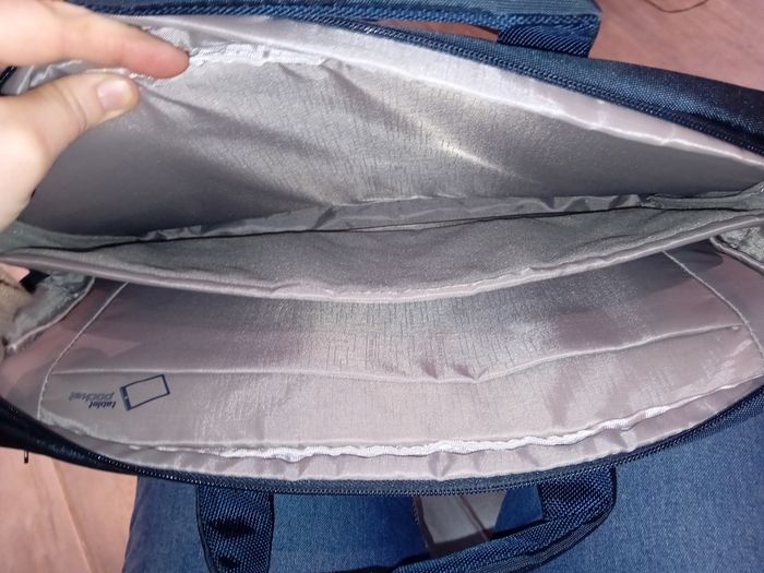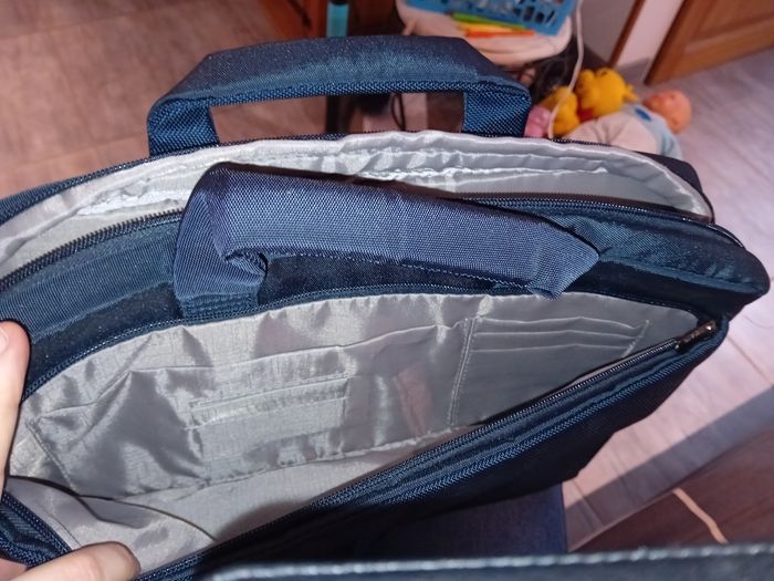 Sacoche pour ordinateur Marque tucano Couleur marine et noir Une grande pochette et une petite devant ou l'ont peux mettre des crayons.... Dimensions 41cm largeur 30cm hauteur Bandoulière réglable Tres bon etat ( utilisé 1 fois)