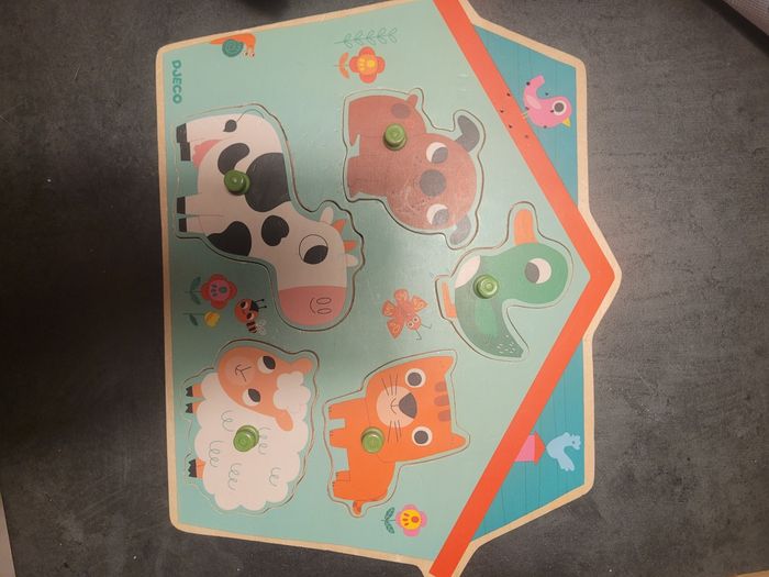 Neuf. Puzzle emboîtement des animaux. En bois. Interaction sonore quand on insère la forme