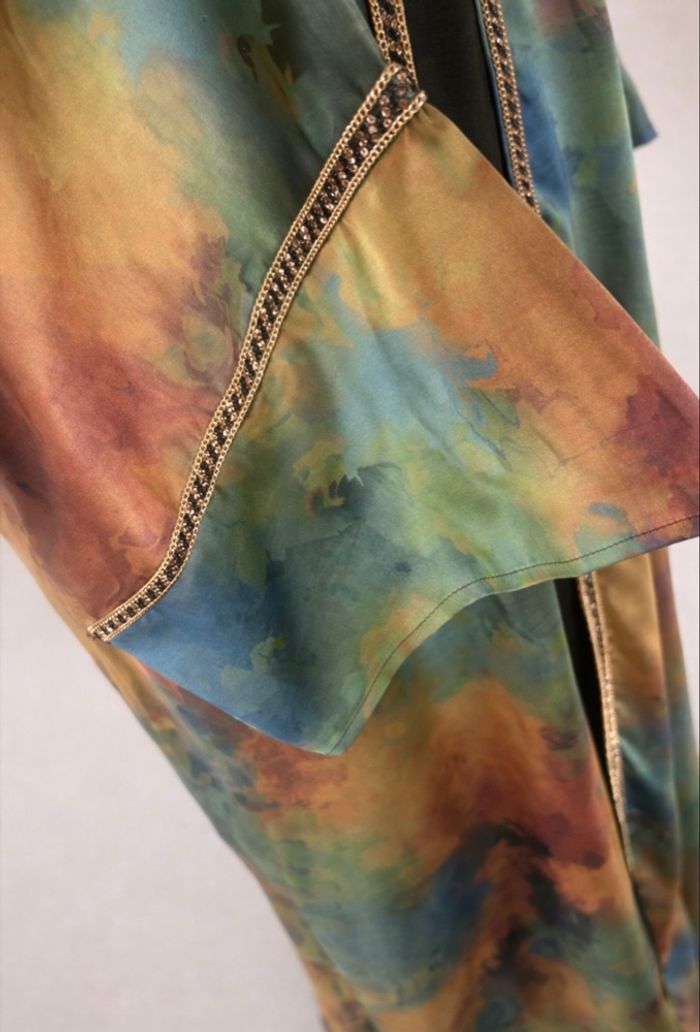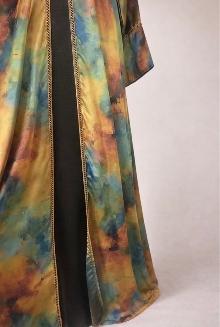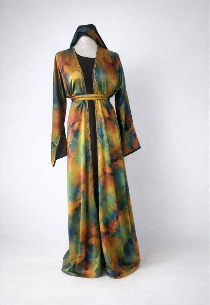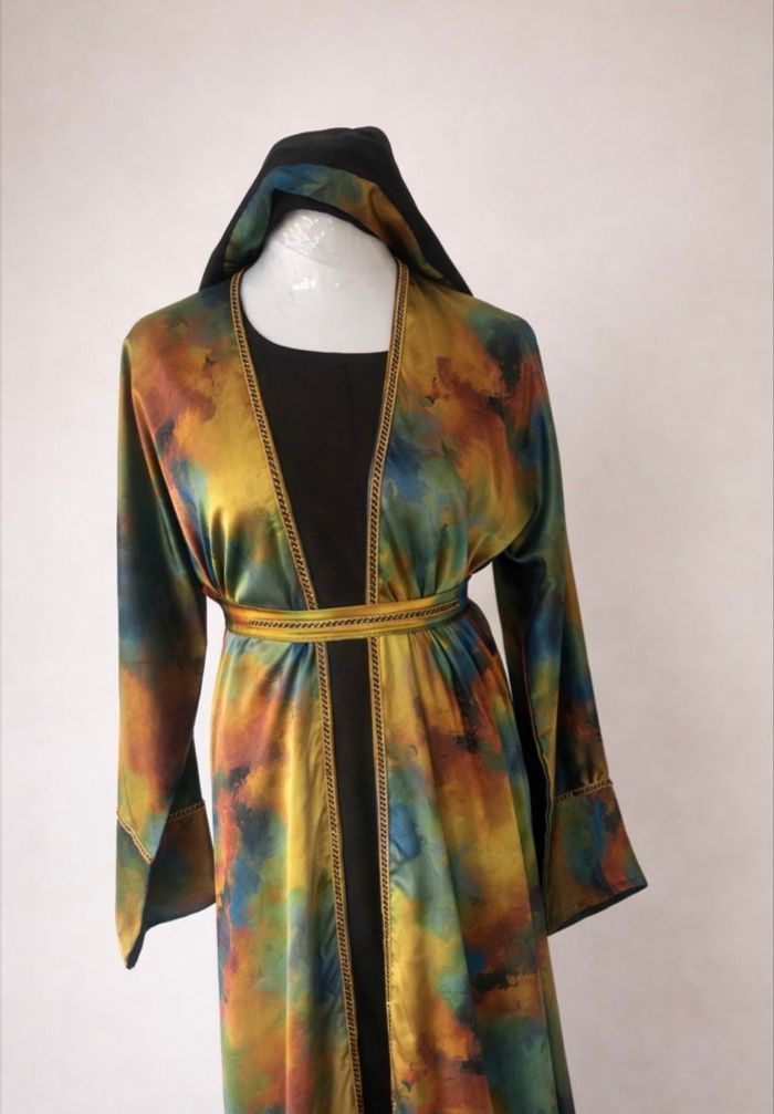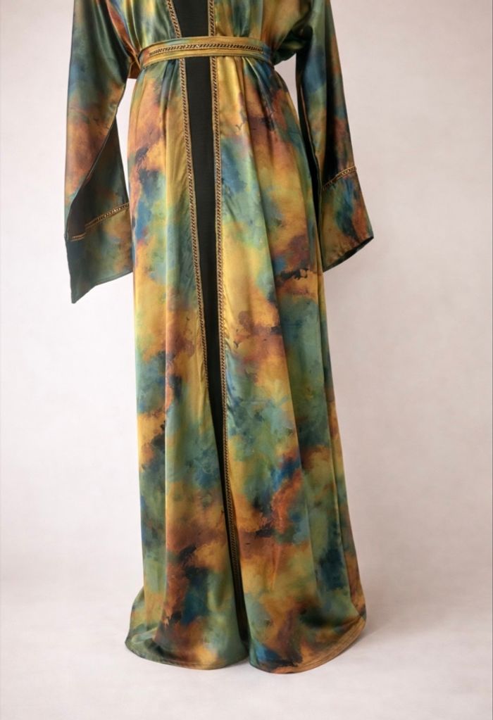Abaya longue multicolore effet tie & dye avec ceinture – Élégante et originale - photo numéro 1