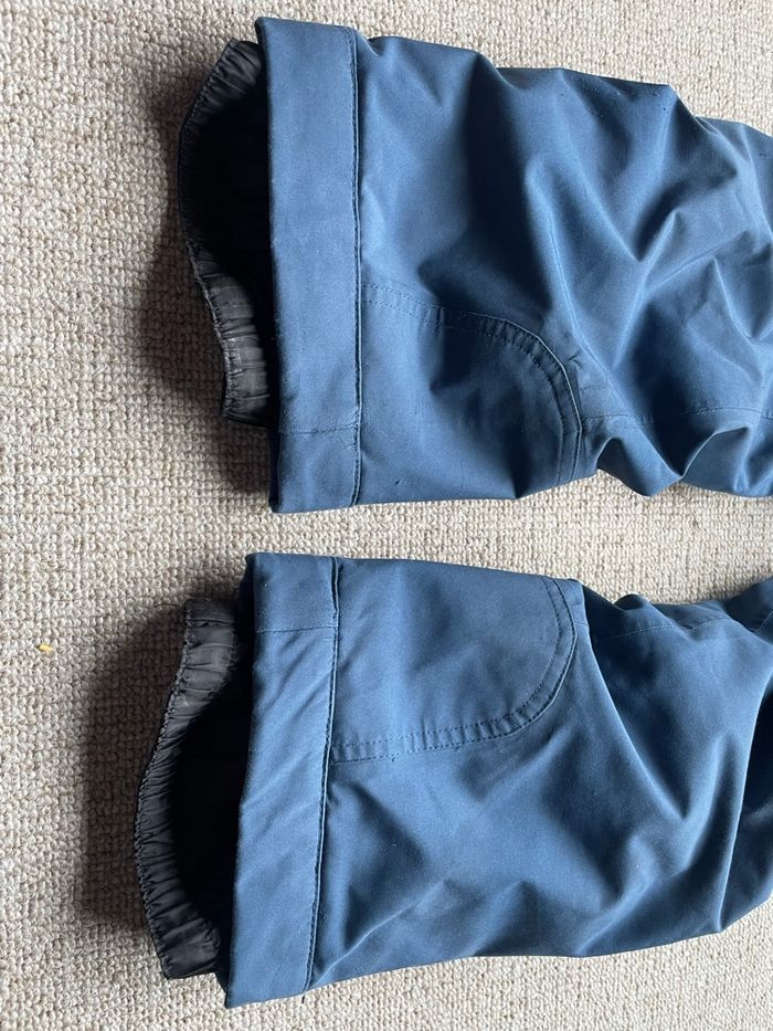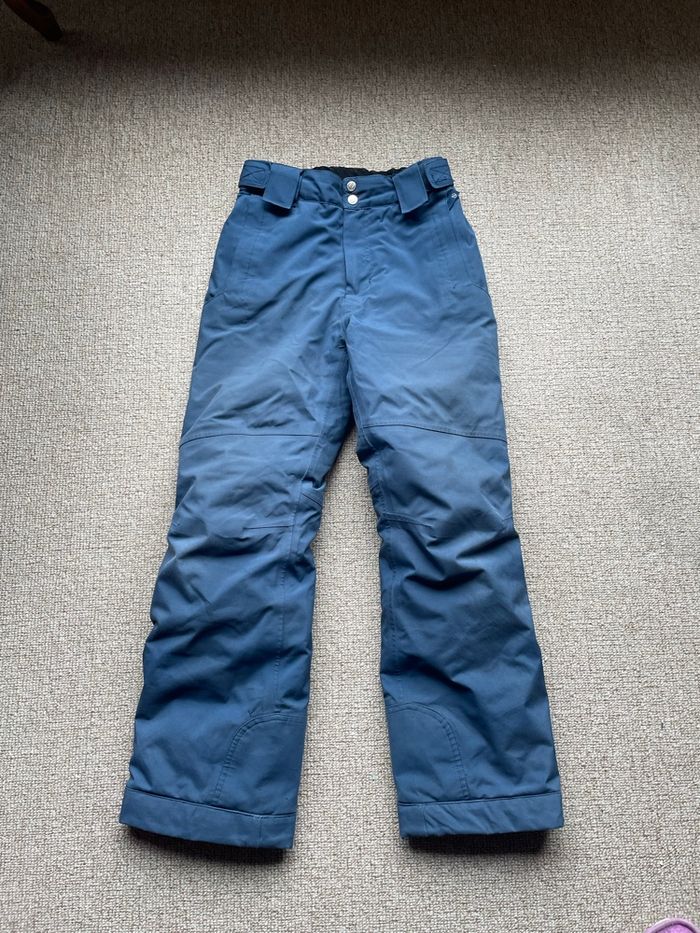 Pantalon de ski chaud et imperméable avec guêtres intégrées. Traces d’usure et de saleté à certains endroits
