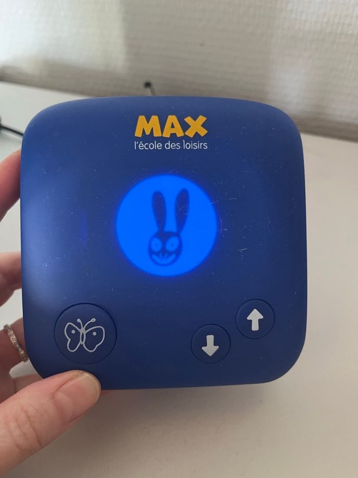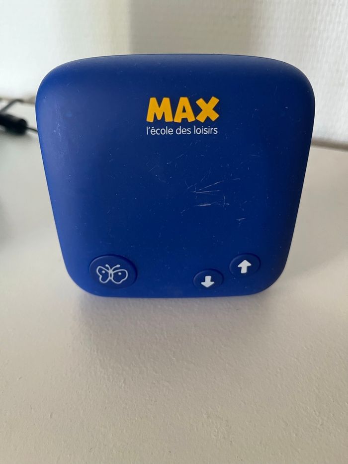 Conteuse Max en parfait état de fonctionnement avec les histoires de Pop, Elmer et Renard en plus dedans. Présente des griffes sur le devant (voir photos) mais ne gêne en rien l’utilisation.