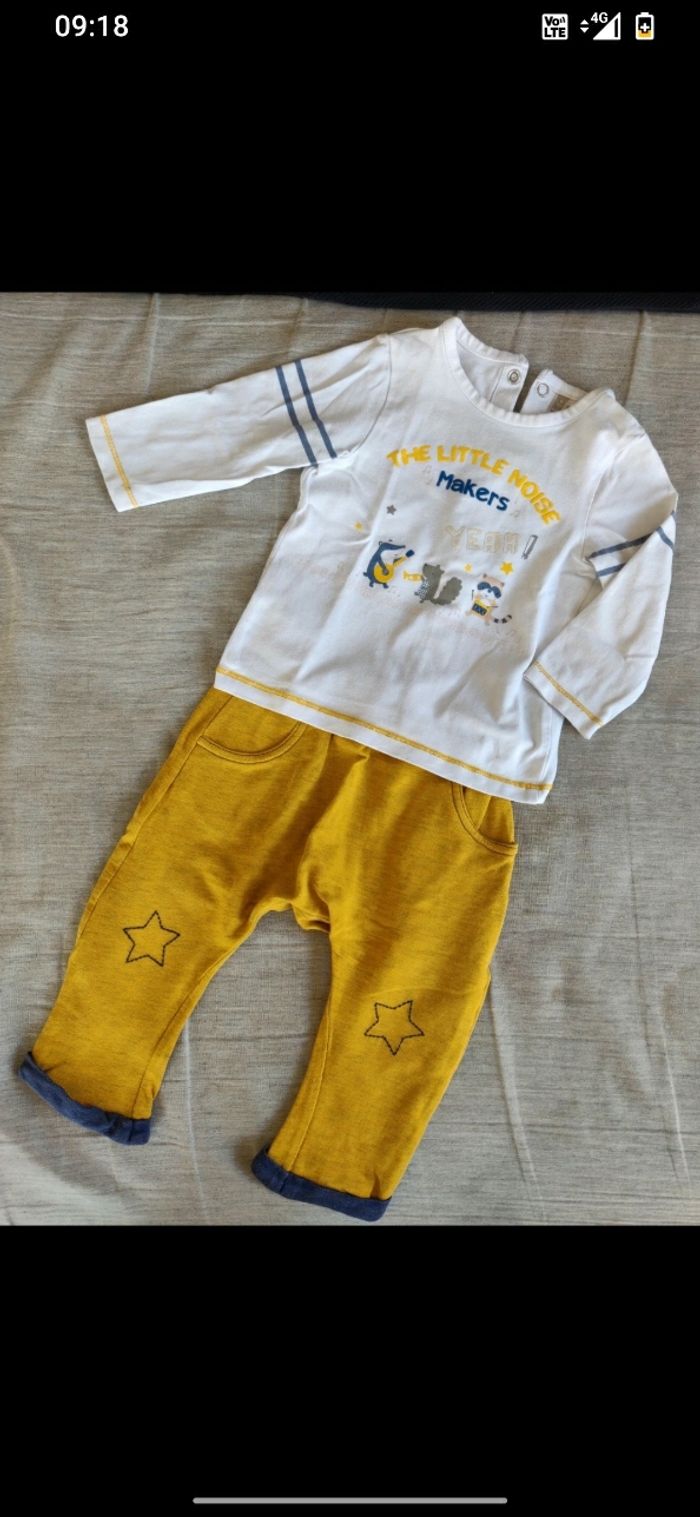 Ensemble composé d'un teeshirt manches longues et d'un pantalon de marque Orchestra taille 9 mois en très bon état.