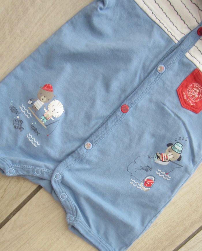 Combishort de la marque Sergent Major. S'ouvre entierement sur le devant avec des pressions. Marque Sergent Major. 3 mois.