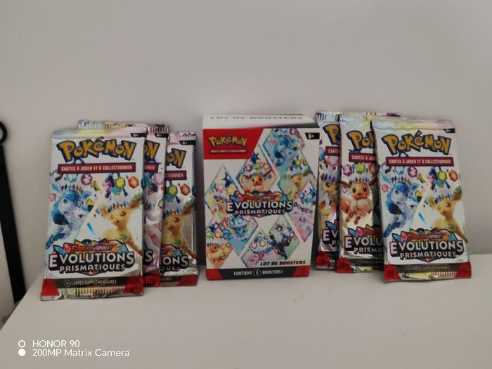 Vends bundle evolution prismatique reconditionné avec 6boosters 10cartes à l'intérieur avec holo et ou reverses et code garantis idéal pour offrir à des enfants ou commencer une collection