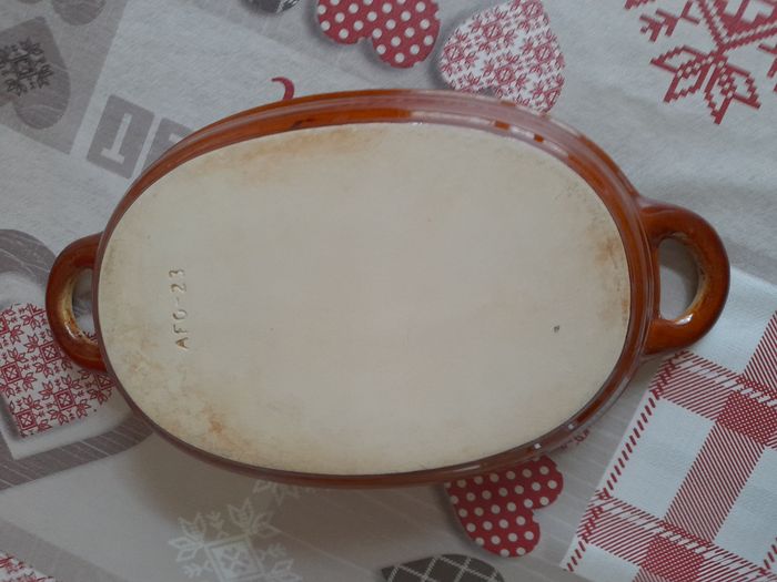 Plat à four en céramique longueur 23,5 cm sans les anses largeur 17 cm hauteur 4 cm 5 euros