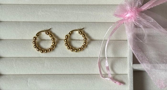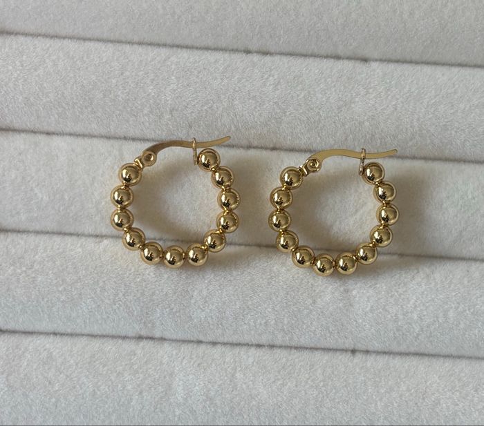 🌹Magnifique boucles d’oreilles dorées en acier inoxydable 📏Diamètre 2,3 cm 🦋Prix ferme, non négociable ✨Neuves