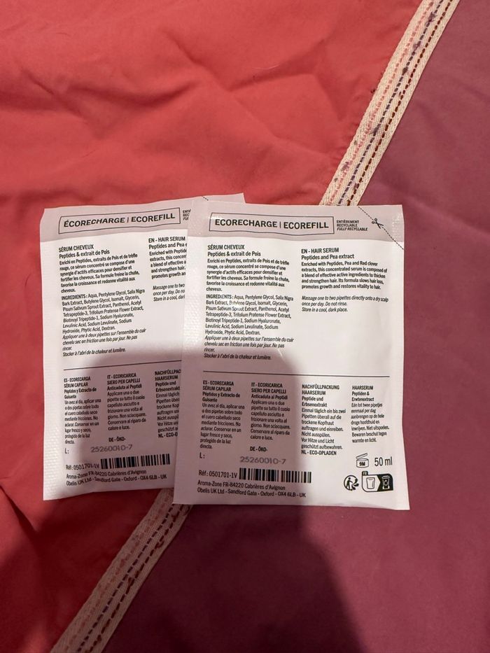 Lot de 2 recharges de 50 ml peptides et extrait de pois de chez aromazone neuf jamais utilisé