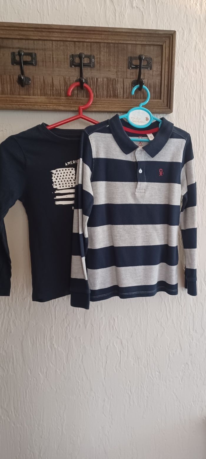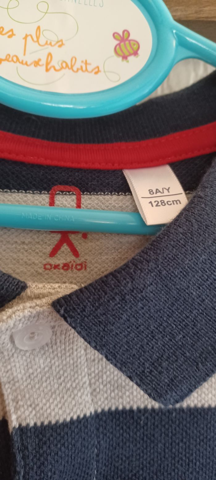 Deux polos - Joli polo okaidi rayé gris et bleu marine - Sweatshirt bleu marine Kiabi Taille 8 ans Pas de défaut