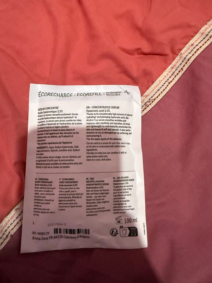 Recharge de 100 ml acide hyaluronique 3,5% de chez aromazone neuf jamais utilisé