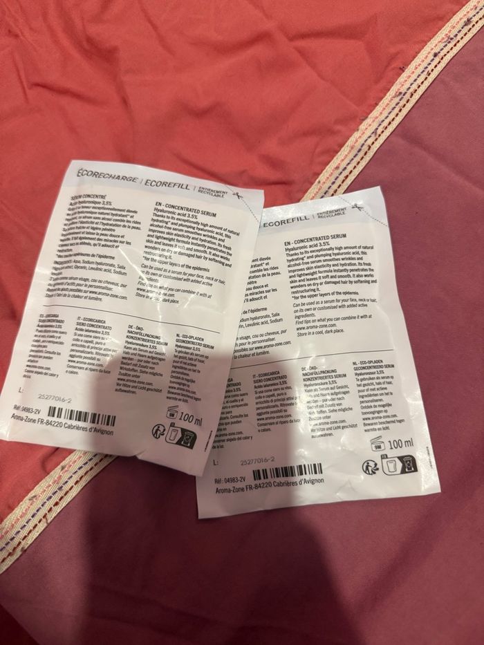 Lot de 2 recharges de 100 ml acide hyaluronique 3,5% de chez aromazone neuf jamais utilisé