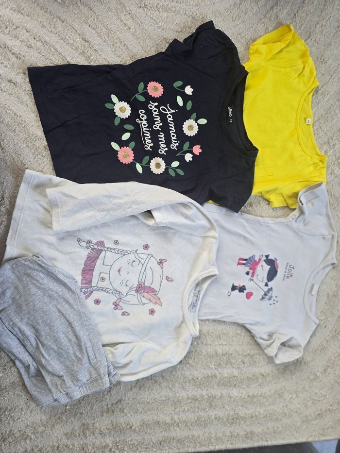 Lot de vetement fille Différente marques Quelque vetement peuvent avoir de petite taches 7 legging 1 jupe 1robe 1blouse 4cols rouler 4 t-shirt manche longue 3 t-shirt 2 pijama 3 marcel 5maillot de corps manche courte 4t-shirt manche longue petit bateau hm 4 sweat 3 pull 3 gilet 1 polaire 48 pieces