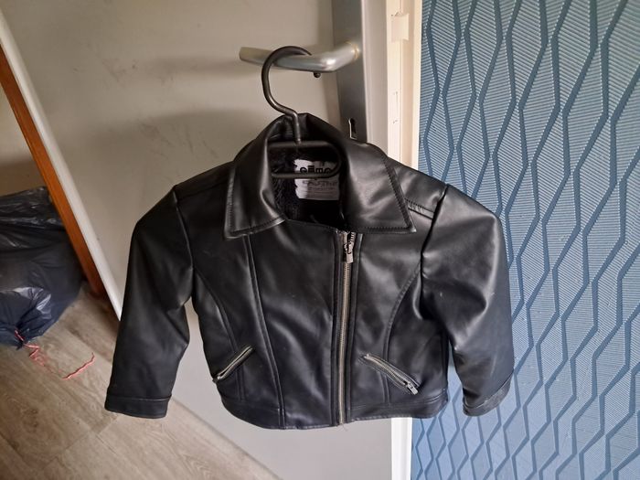 Veste en simili cuire taille 6 ans (juste que ma fille a ecris son prénon) en bonne etat marque gemo