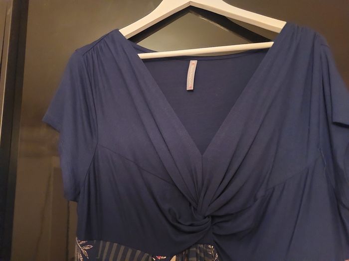 Robe 2 tons Col en V Petites manches Fronces sous poitrine Taille 46 98% elasthane 2% viscose Bon état