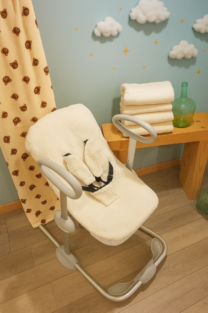 Housse qui s'ajoute à l'assise ( coussin) d'origine béaba . Sherpa écru. Accessoires sangles et entre jambe assortis. Site internet Lavable en machine à 30° Page fb Zol&Saan confections Zolsaanconfections.com