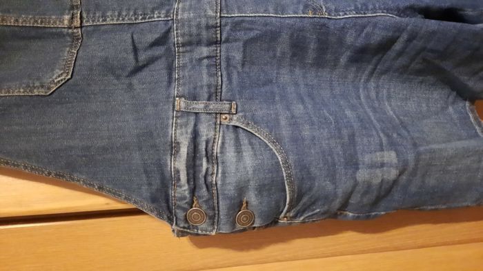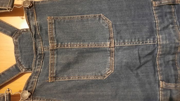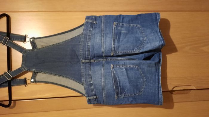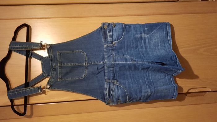 Salopette-short en jean effet usé par endroit Couleur jean brut Excellent état, comme neuve sans étiquette mais c'est une taille 38