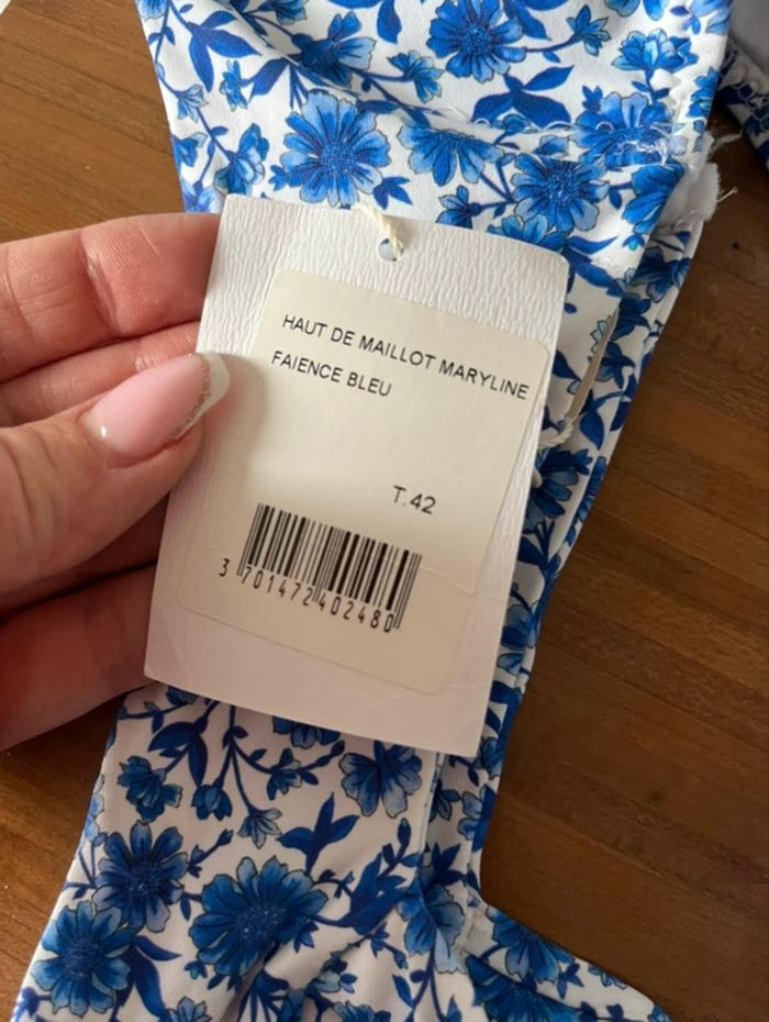 HAUT de maillot de bain Calipige Haut Marilyne faïence bleu de la marque Calipige marque haute gamme taille 42 Neuf avec étiquette PRIX DE BASE : 69 euros