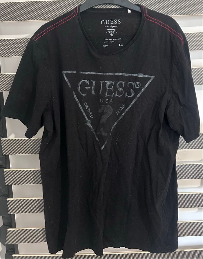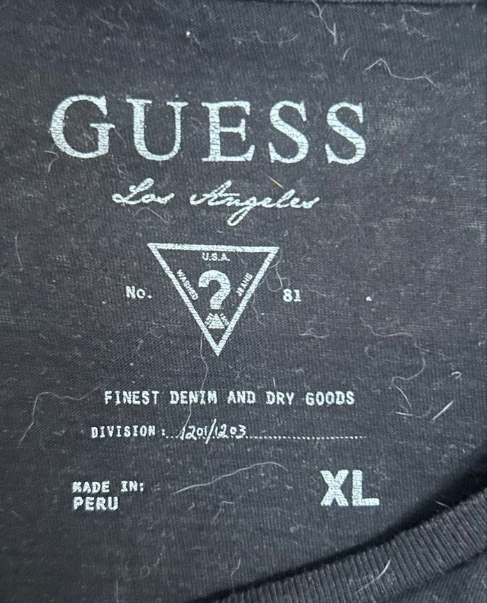 Je vends un t-shirt, de la marque « Guess », taille XL - Dimensions: Longueur 65 cm - Largeur 45 cm - Matière: 100% Coton Numéro de série: RN 82156 - Couleurs: Noir & Argenté En très bon état 9,99€