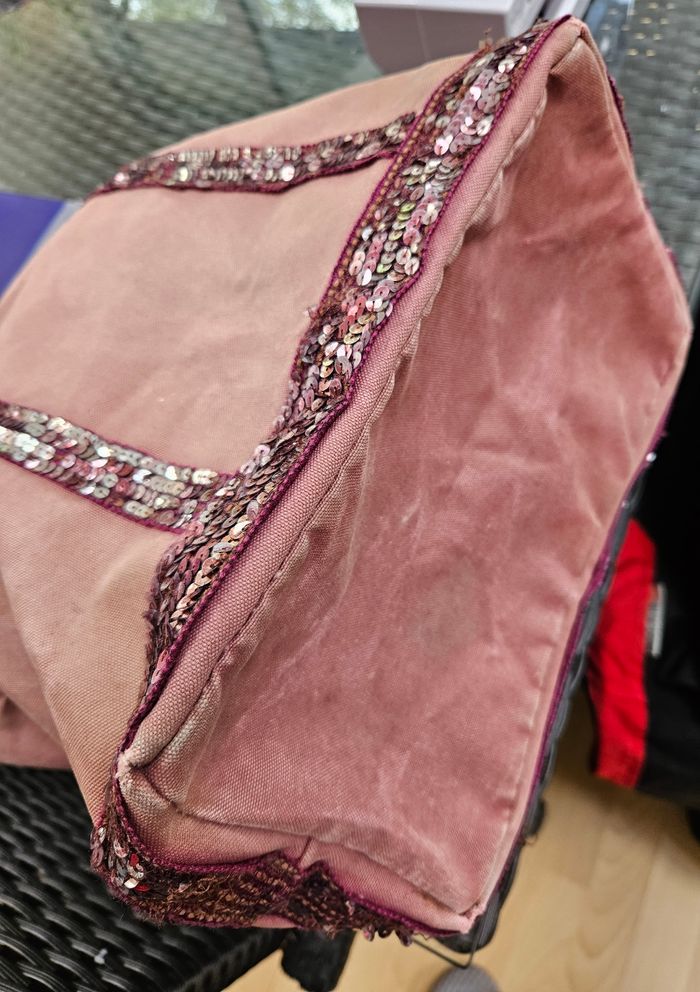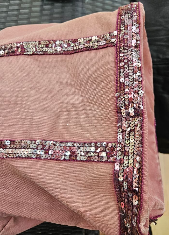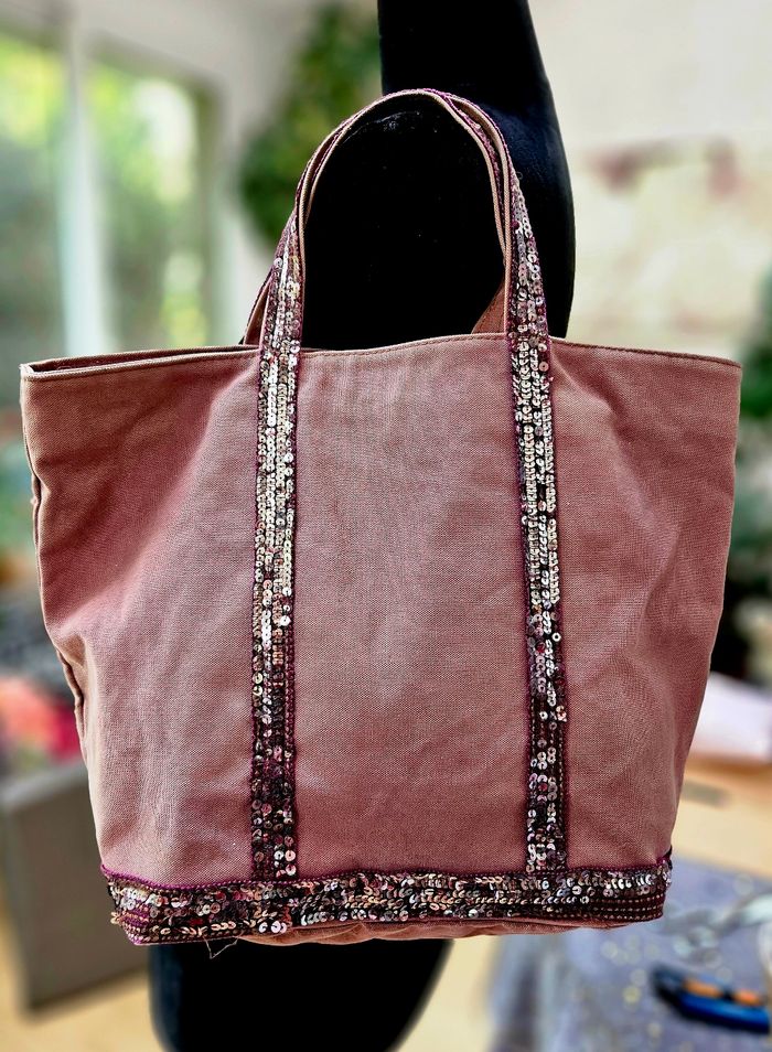 Cabas "Vanessa Bruno Toile et paillettes Vieux rose Modèle authentique Made in France Toile de coton robuste , effet délavé Poche intérieure zippée 40 cm de largeur 30 cm de hauteur