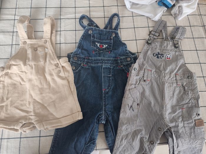 Lot vêtements garçon 6 mois. Voir photos. Comprend notamment plusieurs pantalons, salopettes, hauts, vestes...