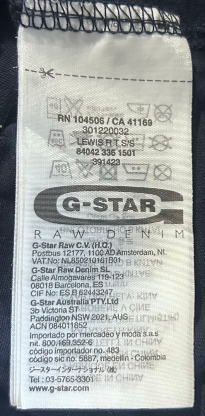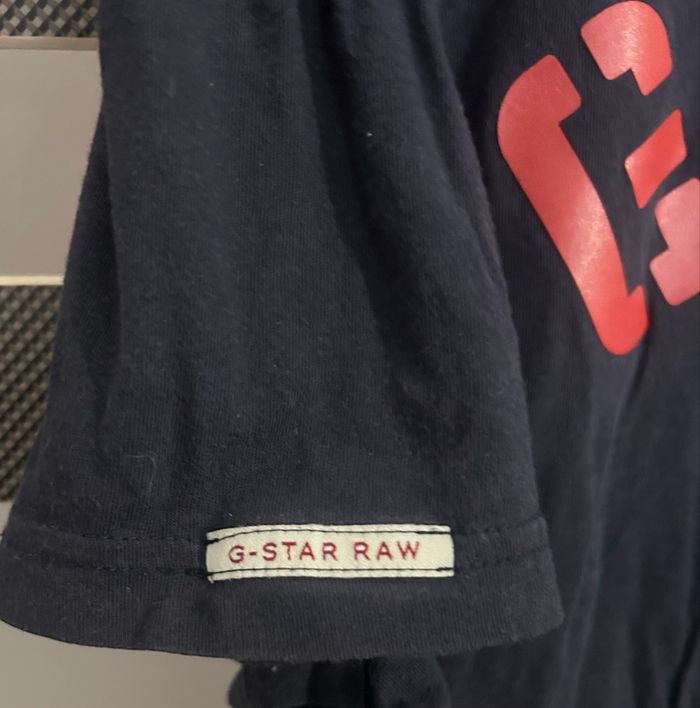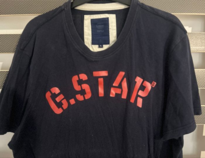 Je vends un t-shirt, de la marque « G-Star », taille XL - Dimensions: Longueur 65 cm - Largeur 45 cm - Matière: 100% Coton Numéro de série: RN 104506 / CA 41169 301220032 - Couleurs: Marine & Rouge En très bon état 9,99€