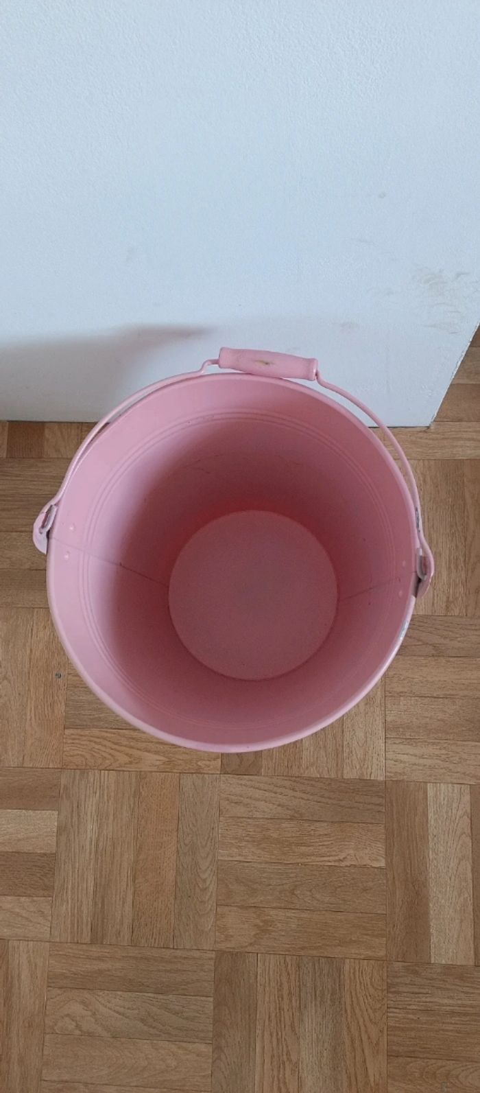 Magnifique cache pot seau rose en très bon état. Dimensions : 28 cm de hauteur avec rebord 27 cm de hauteur sans rebord 28,5 cm de diamètre en haut du seau 18,5 cm de diamètre en dessous du seau