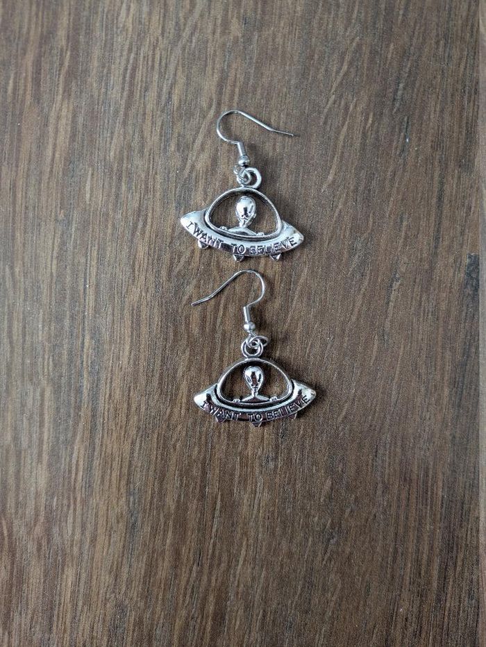 Boucles d'oreilles fantaisie Alien "I want to believe"
