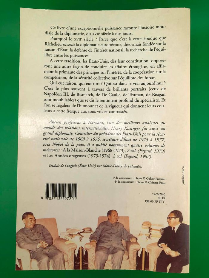Réduction dès 2 articles achetés 5%, 3 articles 10%, 5 articles et plus 20% Me demander SVP pour que j'applique la réduction avec les frais de port au plus bas. Résumé: Ce livre d'une exceptionnelle puissance raconte l'histoire mondiale de la diplomatie, du XVIIe siècle à nos jours. Pourquoi le XVIIe siècle? Parce que c'est à cette époque que Richelieu invente la diplomatie européenne, désormais fondée sur la raison d'Etat, la défense de l'intérêt national, la recherche de l'équilibre entre les puissances. A cette tradition, les Etats-Unis, dès leur constitution, opposeront une autre façon de conduire les affaires étrangères, en affirmant la primauté des principes sur l'intérêt, de la coopération sur la compétition, de la sécurité collective sur l'équilibre des forces. Qui eut raison, qui eut tort? Qui est dans le vrai aujourd'hui? C'est le plus souvent à travers de brillants portraits (ceux de Napoléon III, de Bismarck, de De Gaulle, de Truman, de Reagan sont inoubliables) que se dit le sentiment profond du spécialiste. Et l'on se régalera de l'humour et de la vigueur qui donnent leurs couleurs à cette fresque aux tons vifs et contrastés. (3) #Ludolemoche_Livres