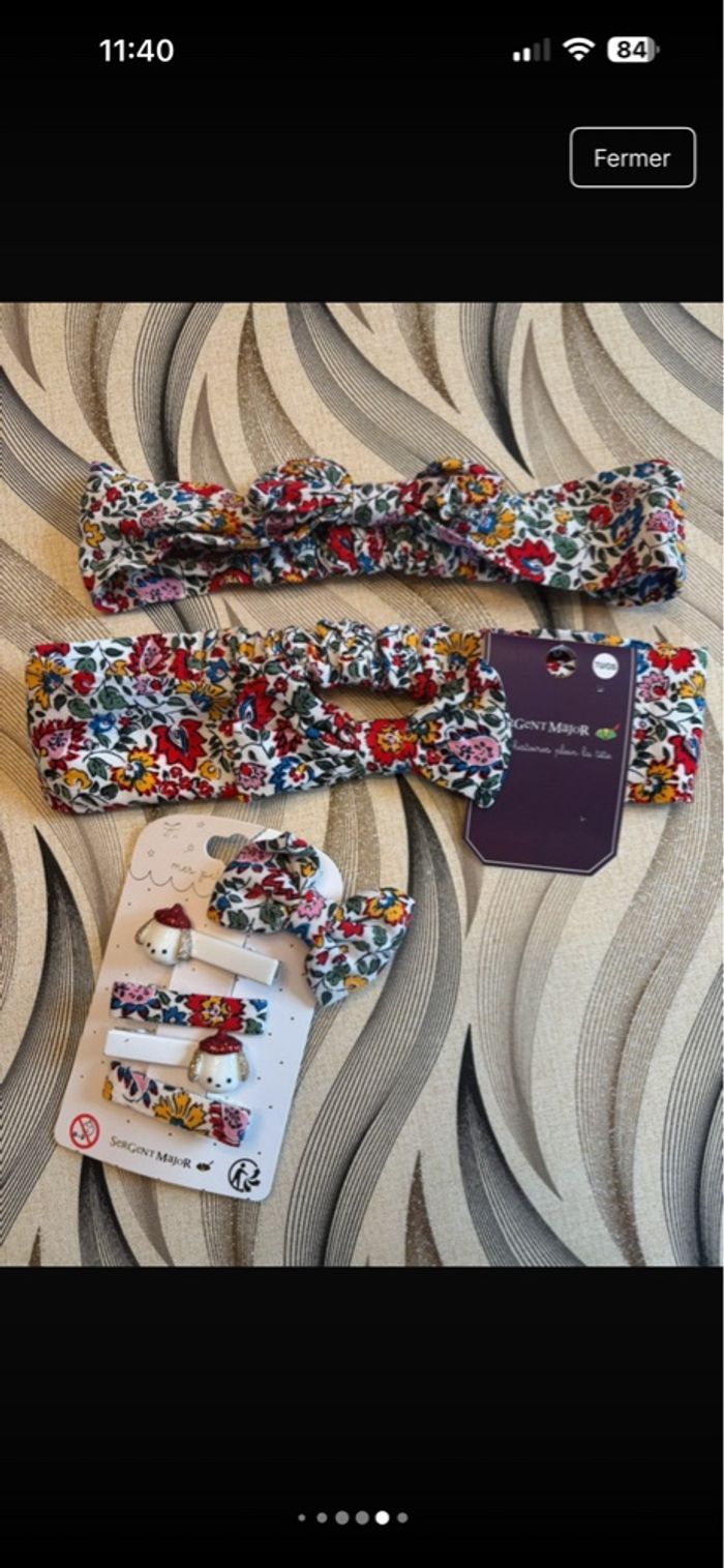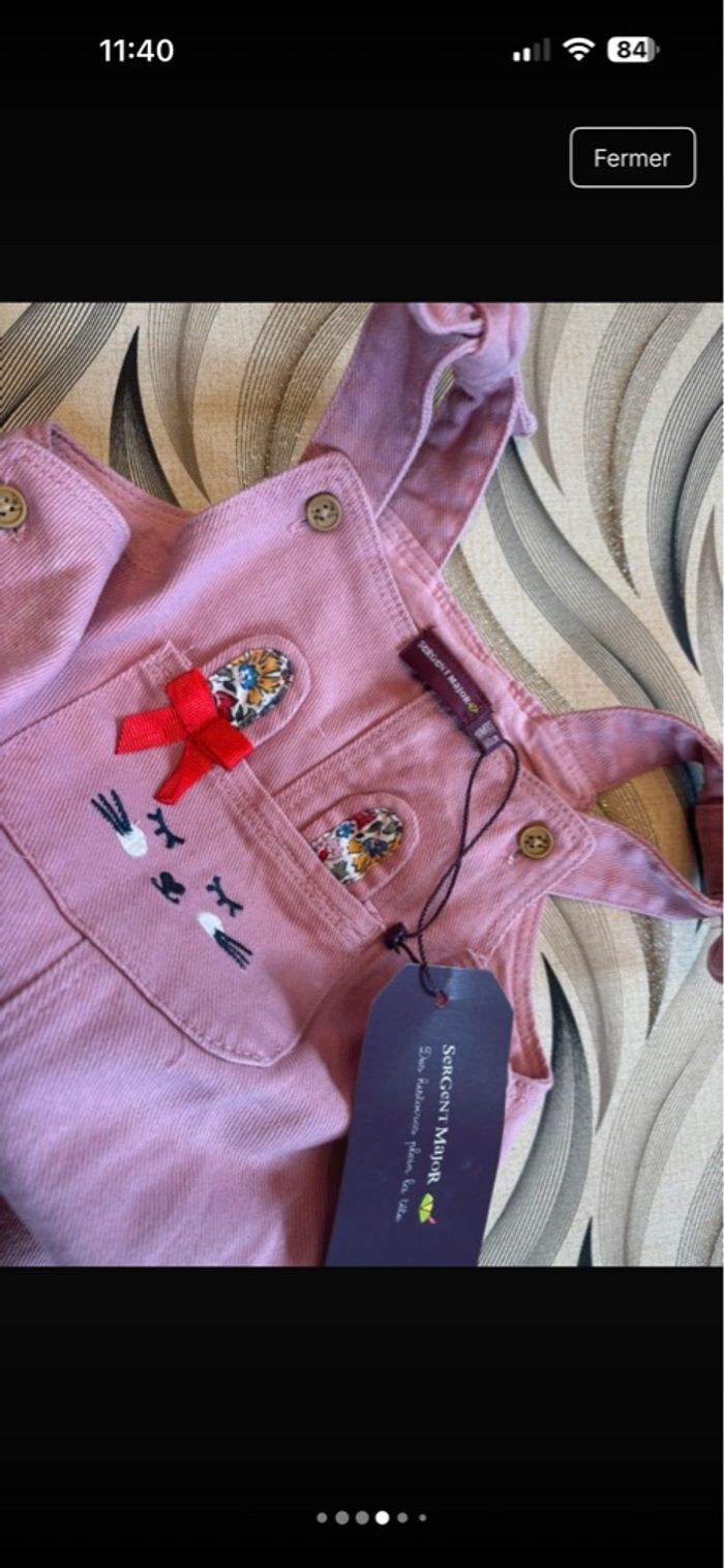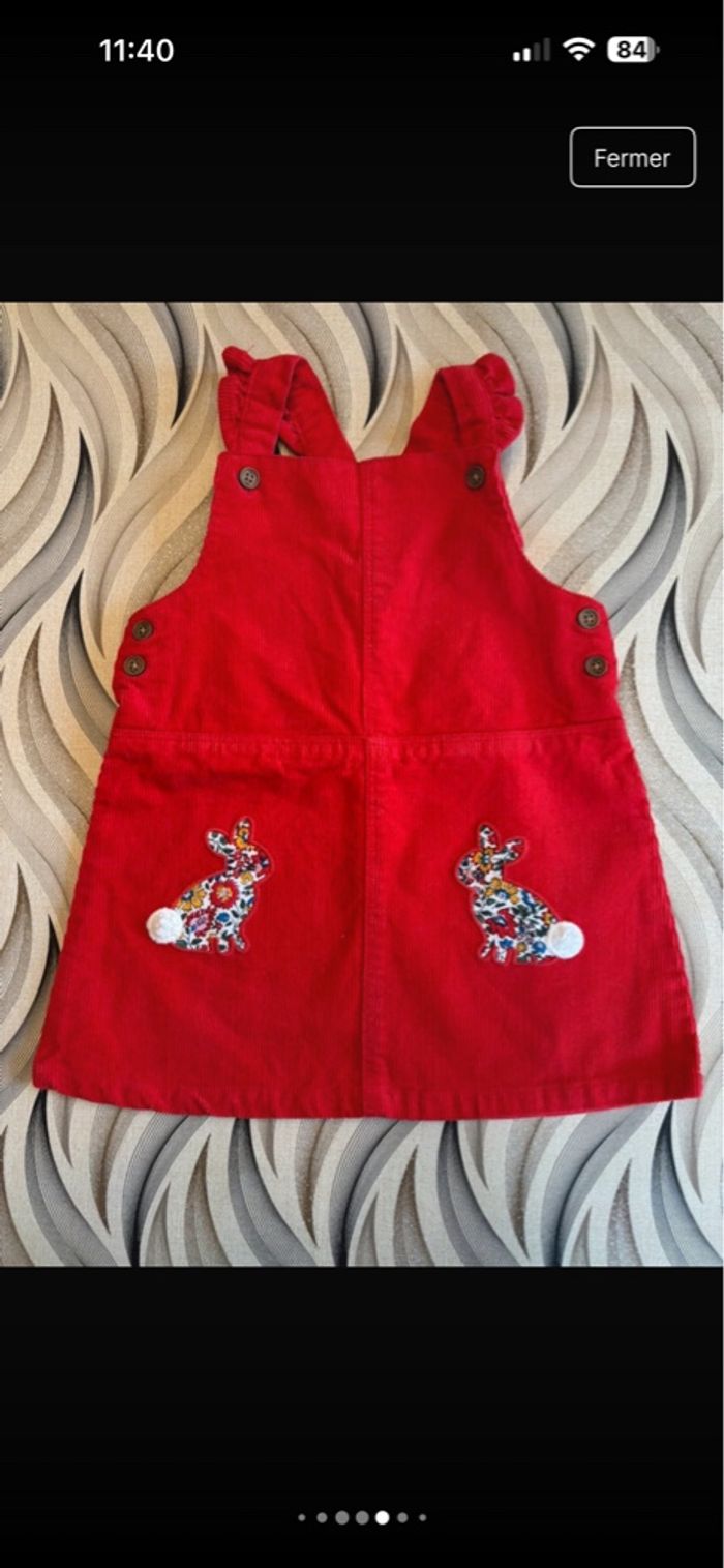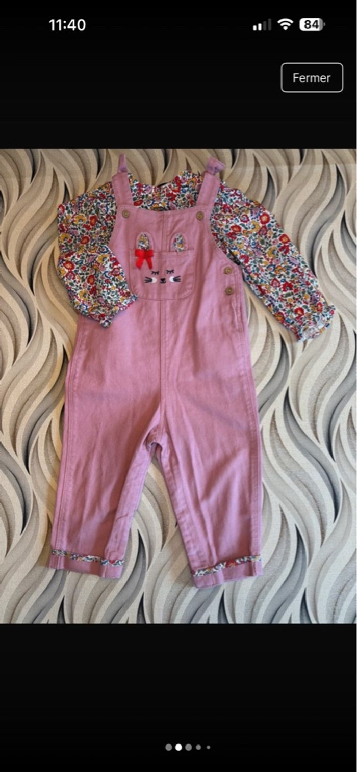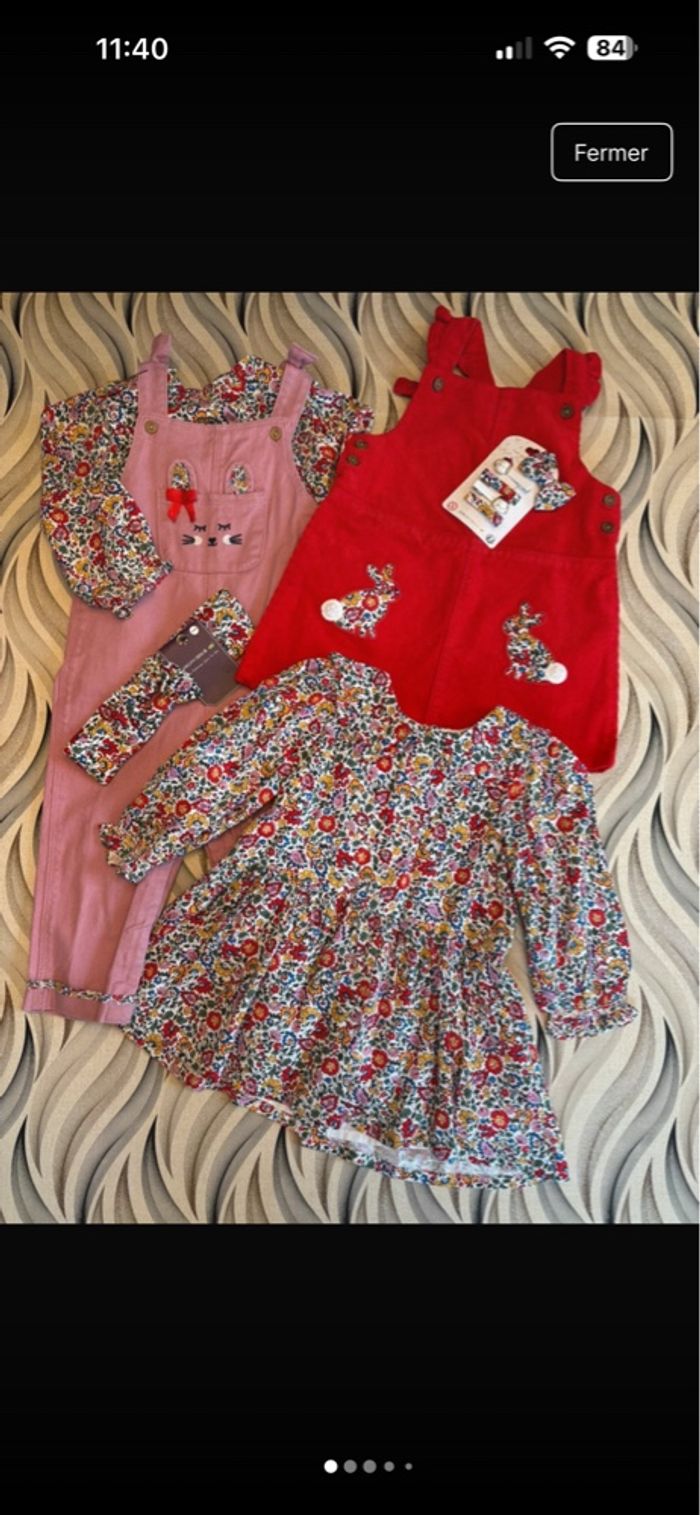 Cet ensemble du thème Promenons-nous dans Paris est composé de : 💐 Une salopette et une blouse neuves avec étiquettes 🏷️ 💐 Une robe manches longues et une robe salopette en velours neuves sans étiquettes, jamais portées, jamais lavées 🫧 🧼 💐 Accessoires : ✨ 1 bandeau taille unique neuf avec étiquette, ✨ 1 bandeau taille unique neuf sans étiquette, non porté ✨Lot de 4 pinces, neuf avec étiquette, pinces jamais portées (un petit éclat sur l’une des 2 pinces motif chien, visible sur la dernière photo )+ 1 barrette Les 2 robes, la salopette et la blouse sont de taille 18 mois 80 cm