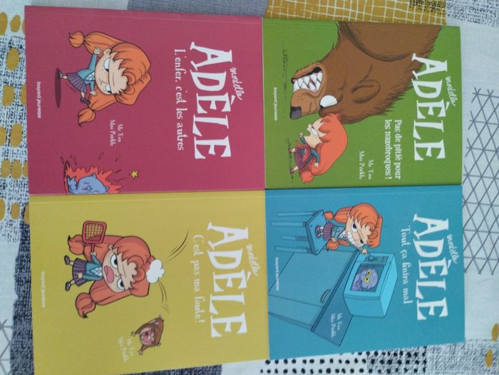 Lot de 4 livres mortelle Adèle 1-Tout finira mal 2- L'enfer, c'est les autres 3- C'est pas ma faute 7- Pas de pitié pour les nazebroques!