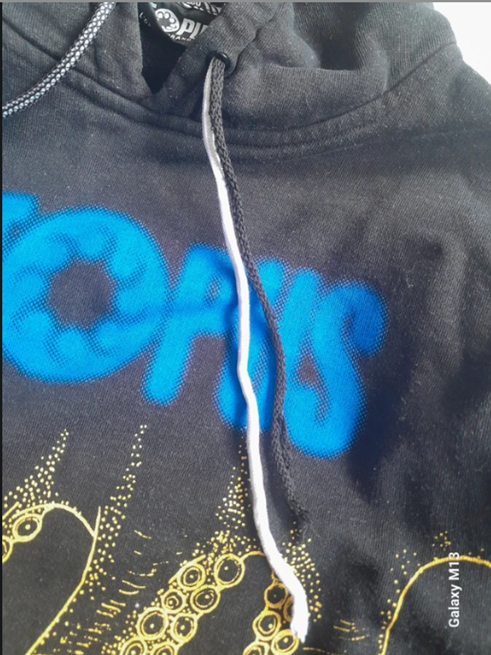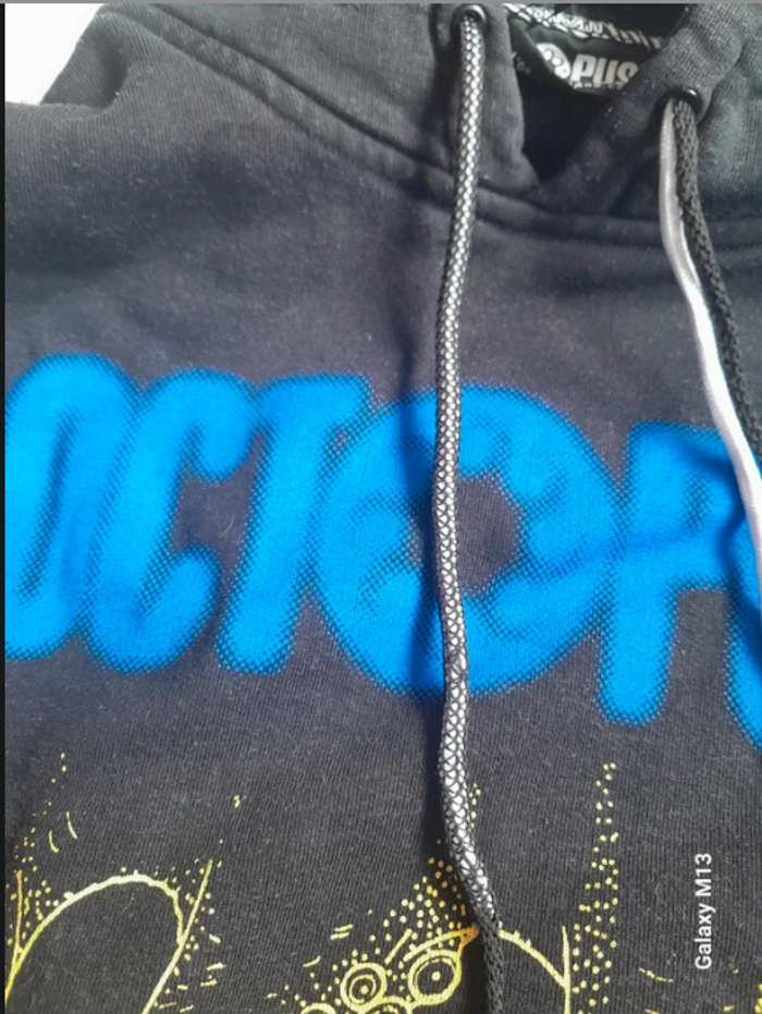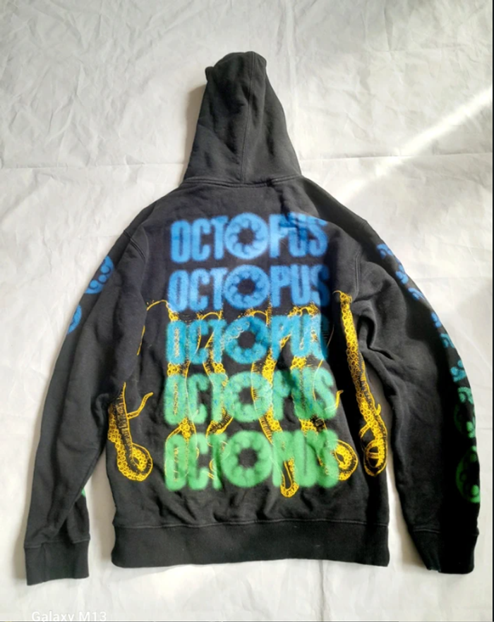 Sweat à capuche homme noir avec des motifs bleu, vert et jaune Octopus taille M - photo numéro 5