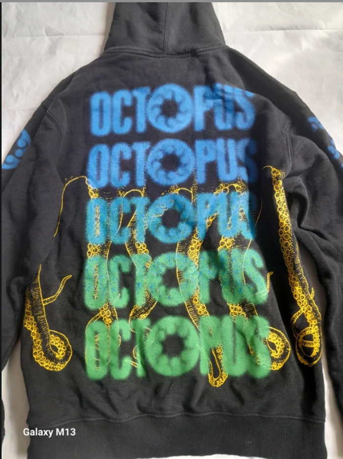 Sweat à capuche homme noir avec des motifs bleu, vert et jaune Octopus taille M - photo numéro 4