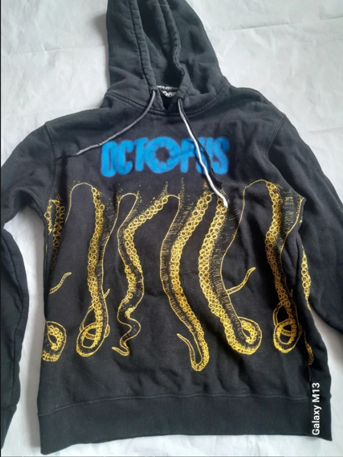 Sweat à capuche homme noir avec des motifs bleu, vert et jaune Octopus taille M - photo numéro 1