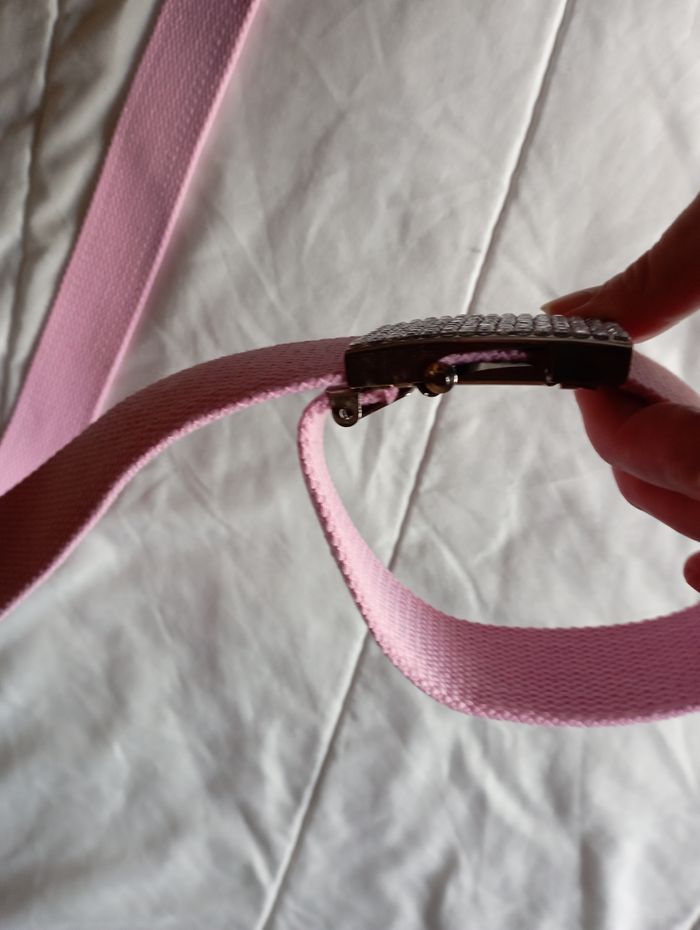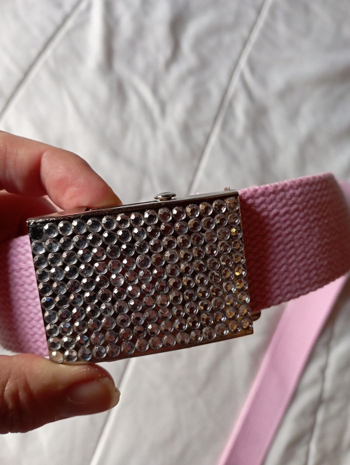 ceinture souple rose avec un ceinturon avec des strass longueur : 105 cm je n'ai pas trouvé de marque en très bon état (à part qu'il manque 1 strass mais, à mon avis cela ne se remarque pas trop) pour plus de renseignement(s) et/ou photo(s), n'hésitez pas à me faire un message j'étudierai toute proposition que vous me feriez