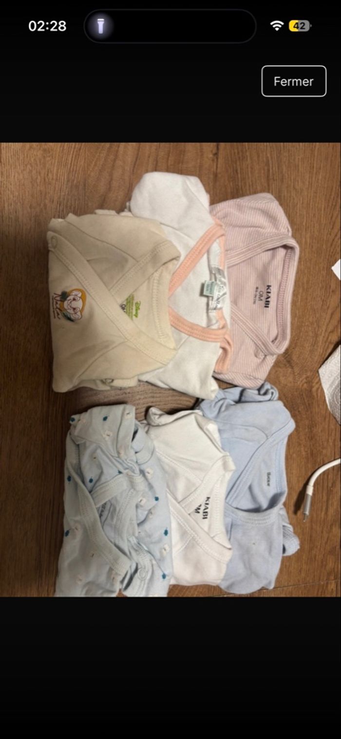 vêtement non taché, non troué et toutes les pressions ferme parfaitement . Vêtements mis peu de fois propre de différentes marques. Ils feront le bonheur de vos loulous☺️