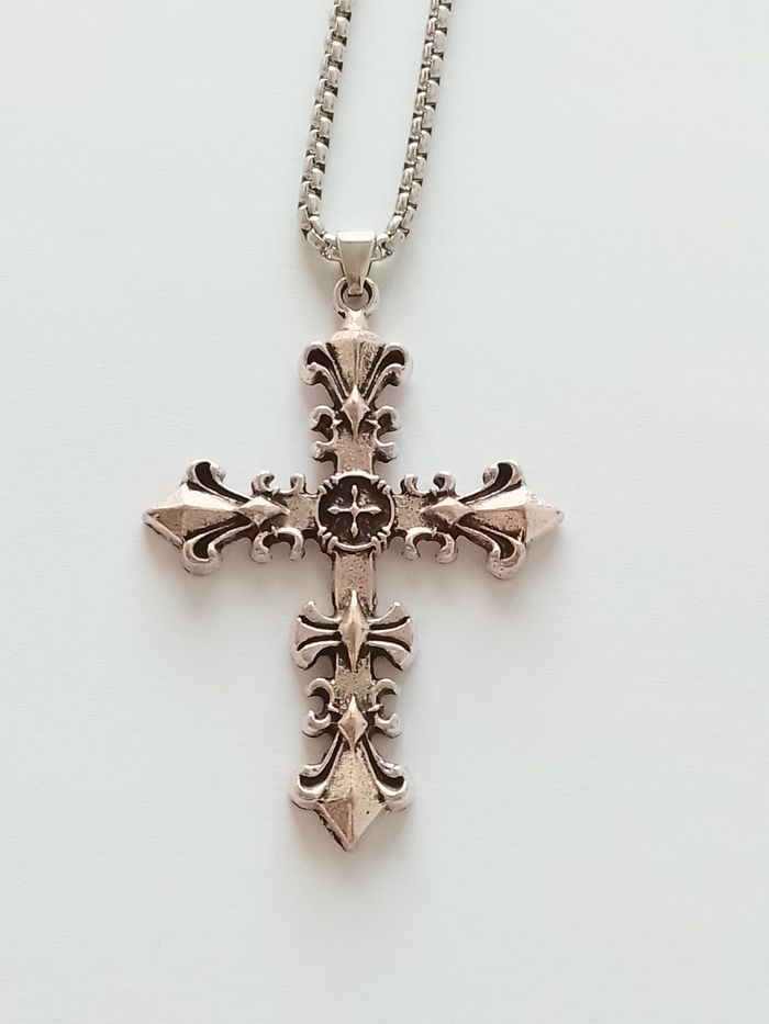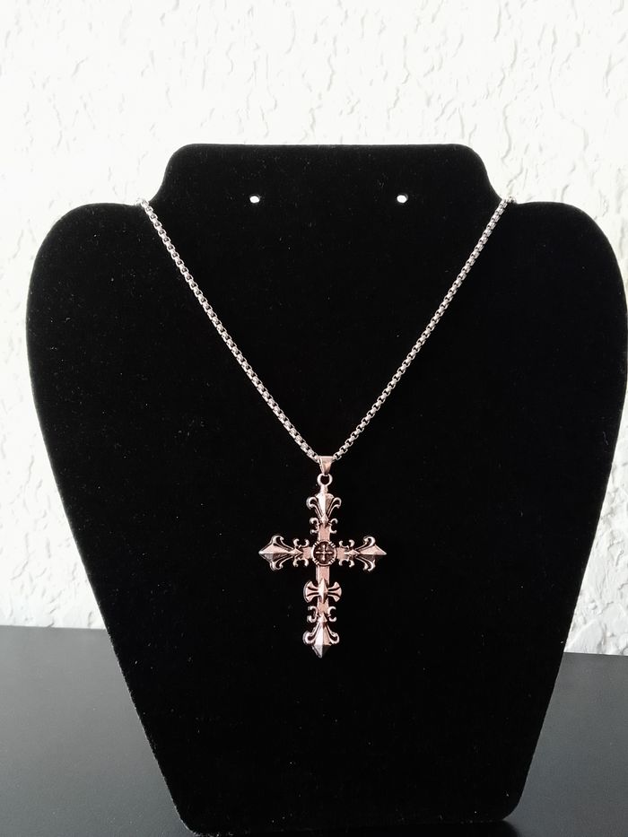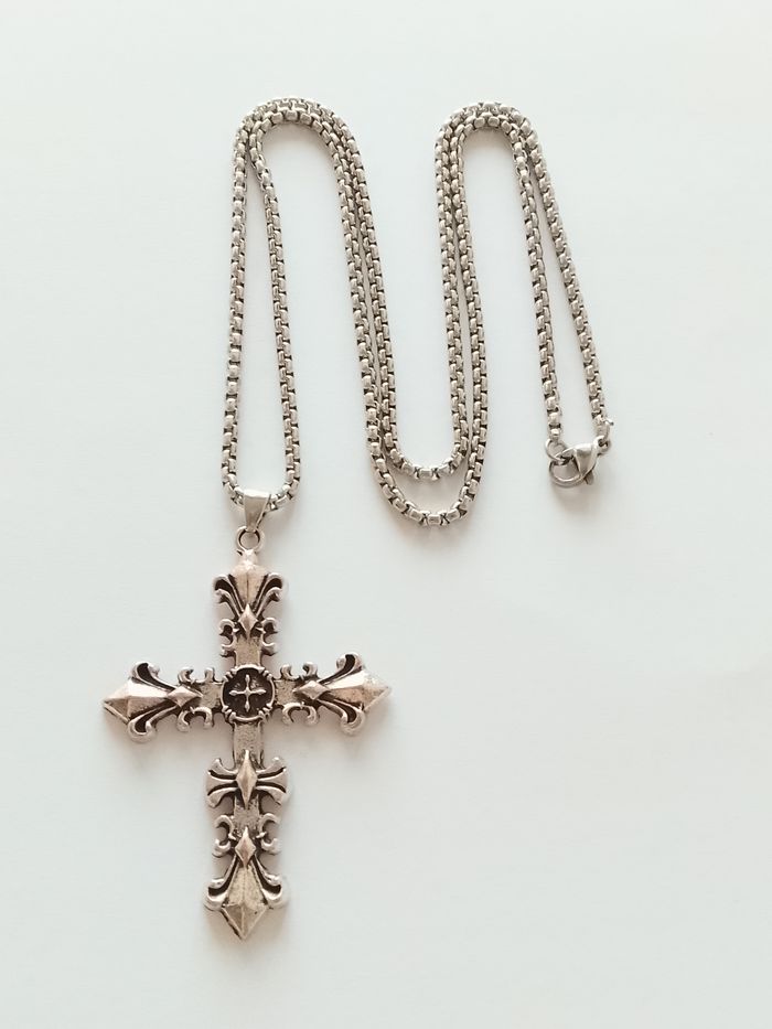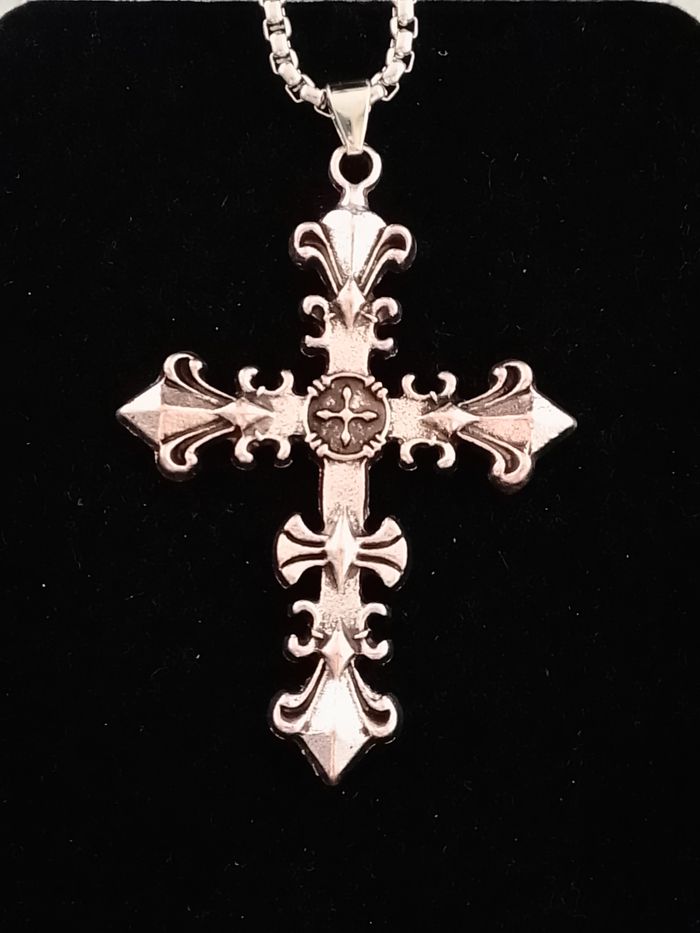 Chaîne + pendentif gothique. Pendentif : croix. (gothique, religieux, protection, spirituel, celtique, idéal cadeau) DESCRIPTIF : Couleur : argenté. Taille chaîne : 60 cm Diamètre pendentif : 4 cm L * 5,5 cm H Envoi rapide et soigné.